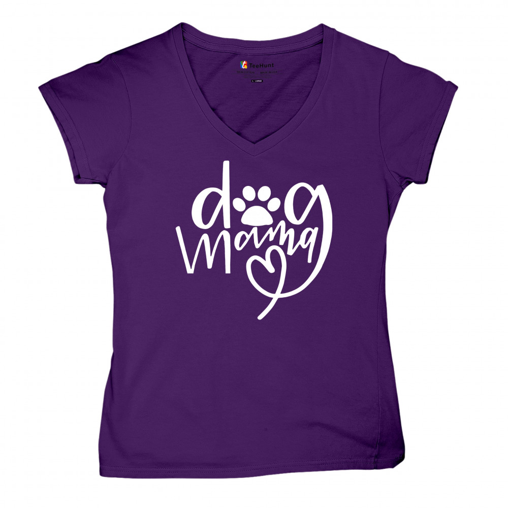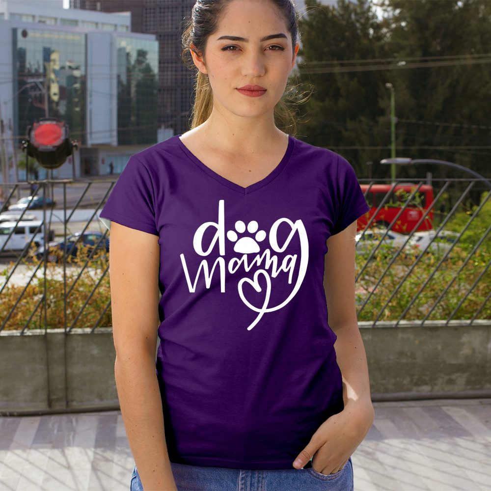 DOG MAMA FUNNY MOTHER'S DAY women's v-neck t-shirt puppy breed adopt a pet tee purple