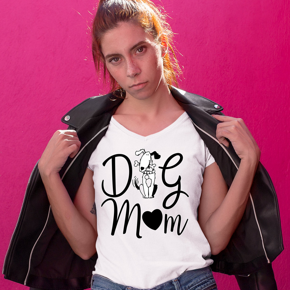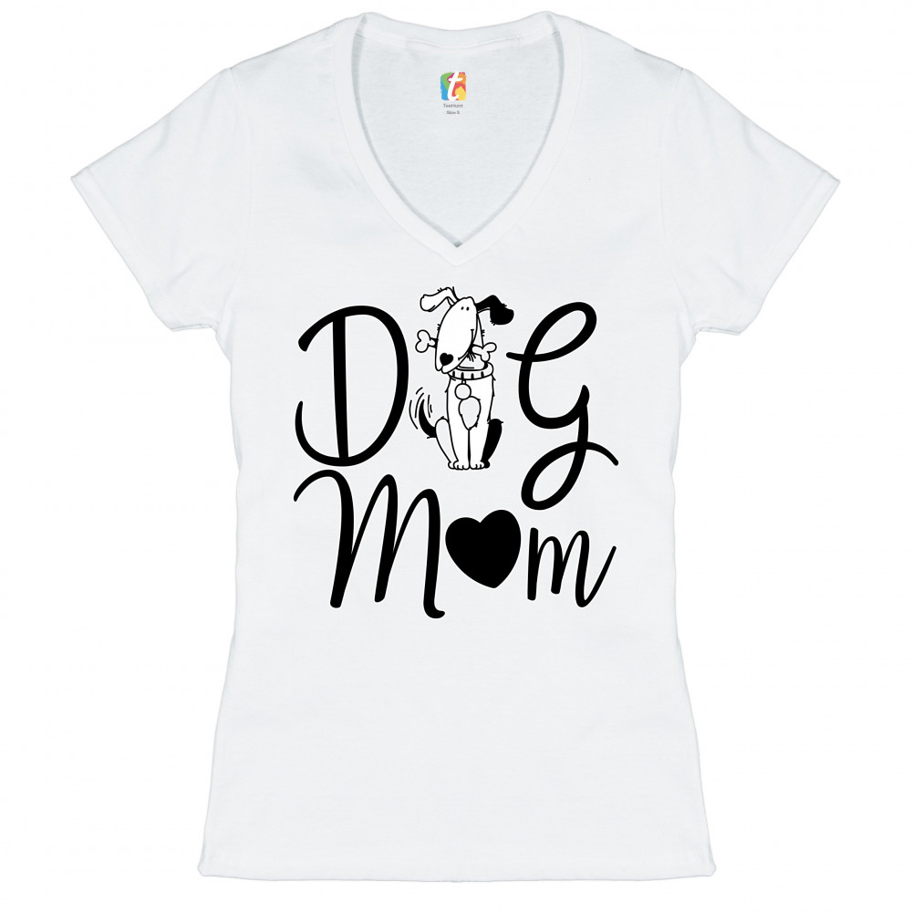 DOG MOM women's v-neck t-shirt funny mother's day mommy dog lover fur mama tee white
