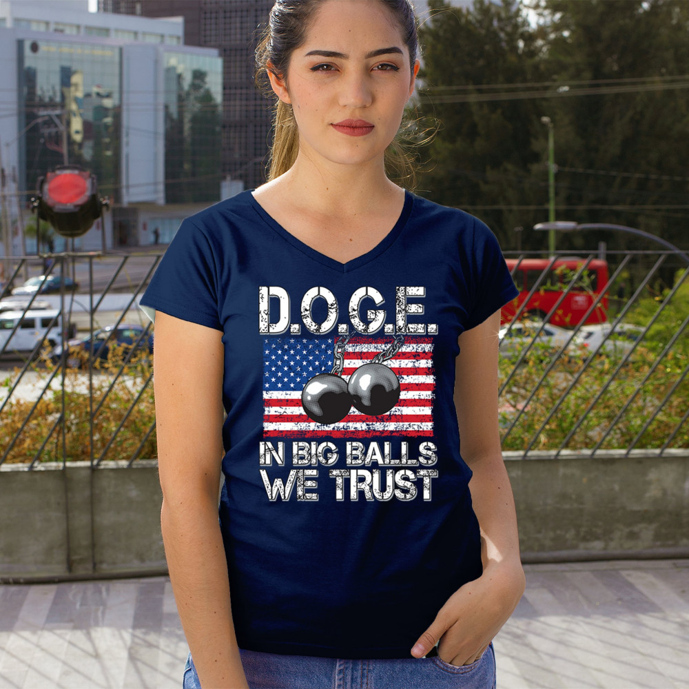 The D.O.G.E. In Big Balls We Trust design blends patriotic grit with sharp political satire. Featuring chained wrecking balls over a distressed American flag, this graphic hits hard. Perfect for conservative men, bold personalities, and political events like rallies, debates, and meetups.