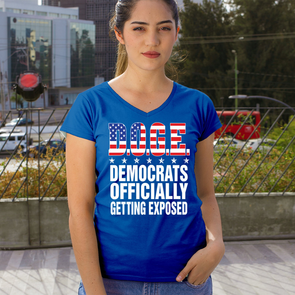 The D.O.G.E. Democrats Officially Getting Exposed design features bold text packed with patriotic flair and political edge. Stars-and-stripes fill the acronym while the clean layout delivers a direct anti-liberal message. Ideal for conservatives, libertarians, and free-speech defenders at rallies, campaign events, or daily wear.