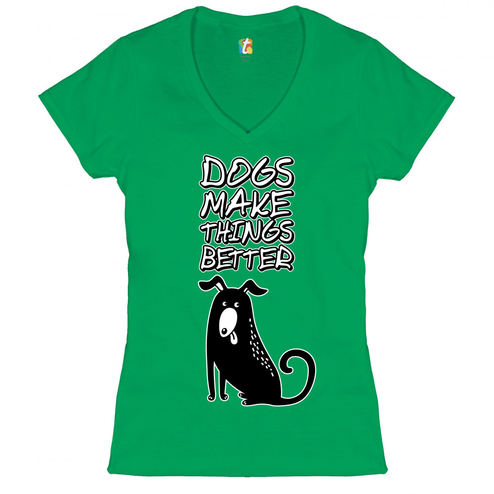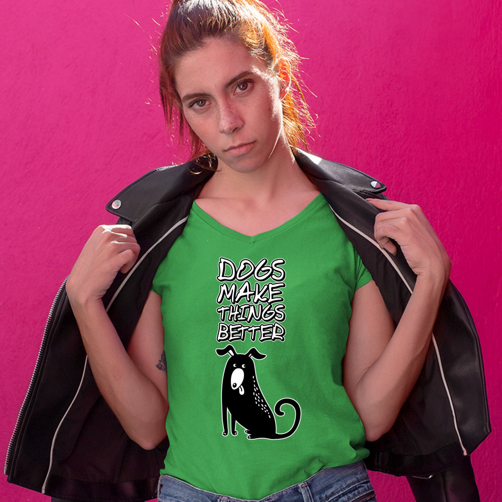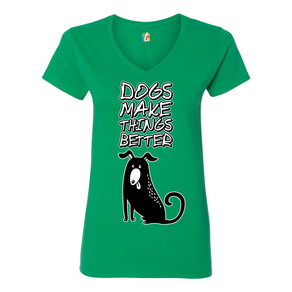 DOGS MAKE THINGS BETTER women's v-neck t-shirt pet owner i love my dog tee green