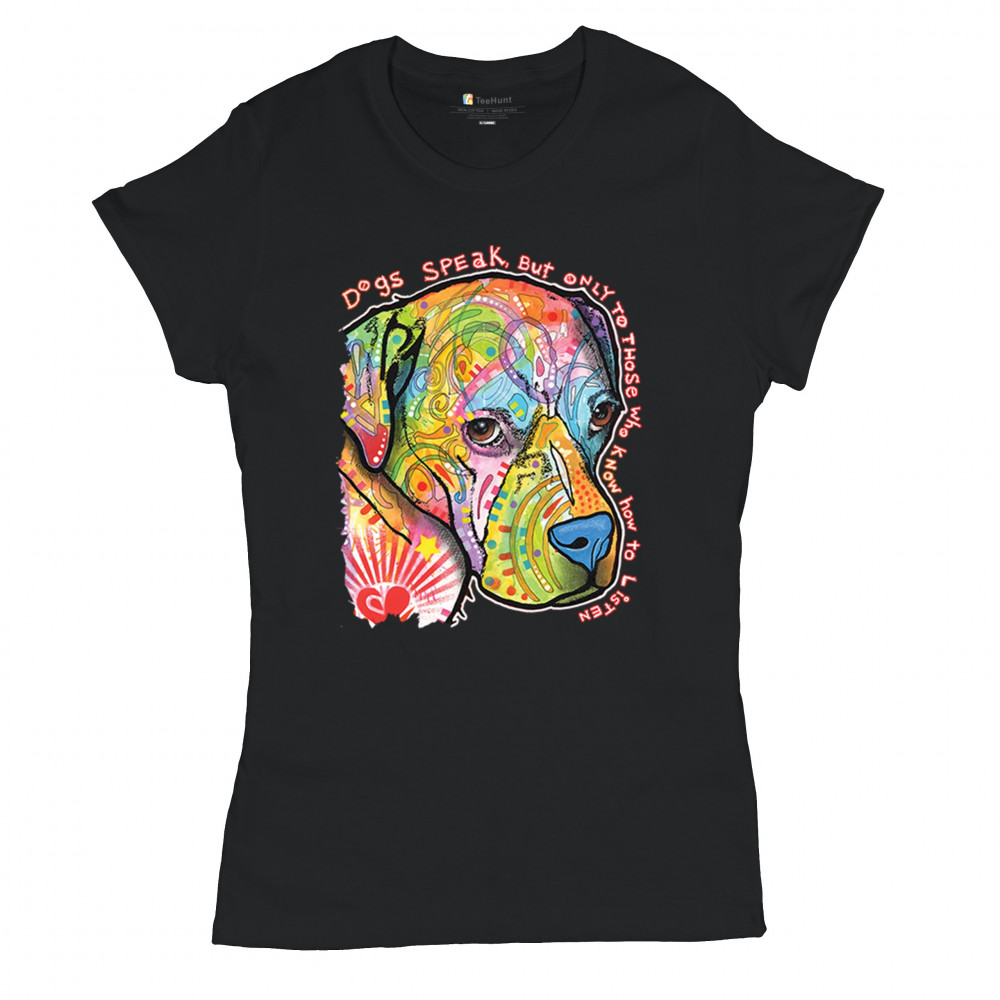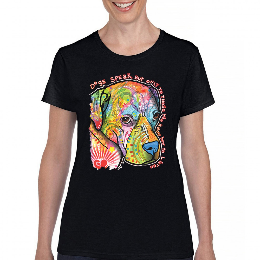 DOGS SPEAK TO THOSE WHO LISTEN t-shirt dean russo neon pet puppy women's tee black