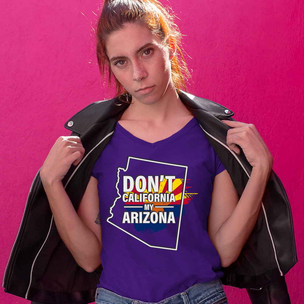 DON'T CALIFORNIA MY ARIZONA women's v-neck t-shirt southern attitude funny tee purple