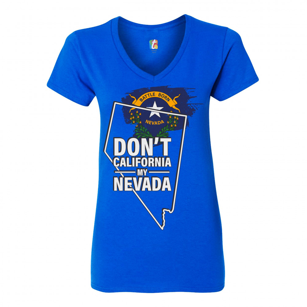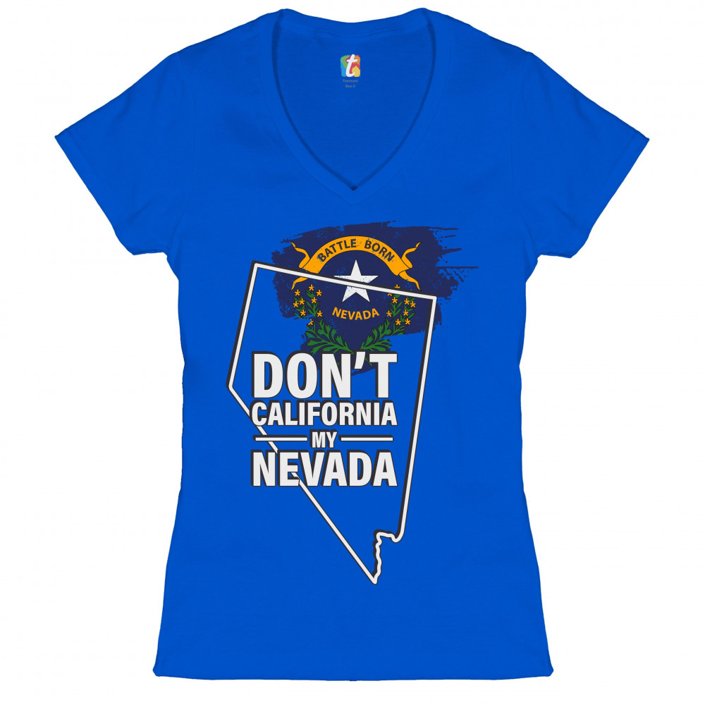 DON'T CALIFORNIA MY NEVADA women's v-neck t-shirt the battle born state tee royal blue