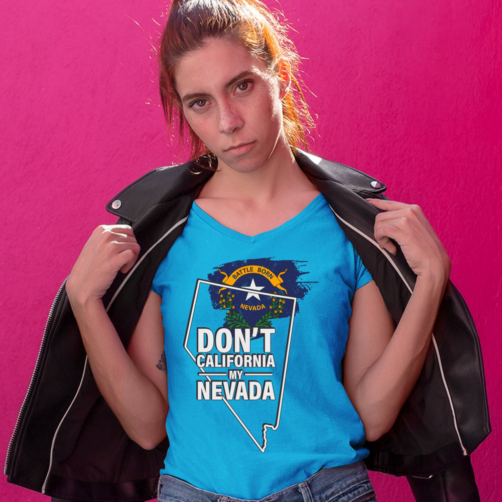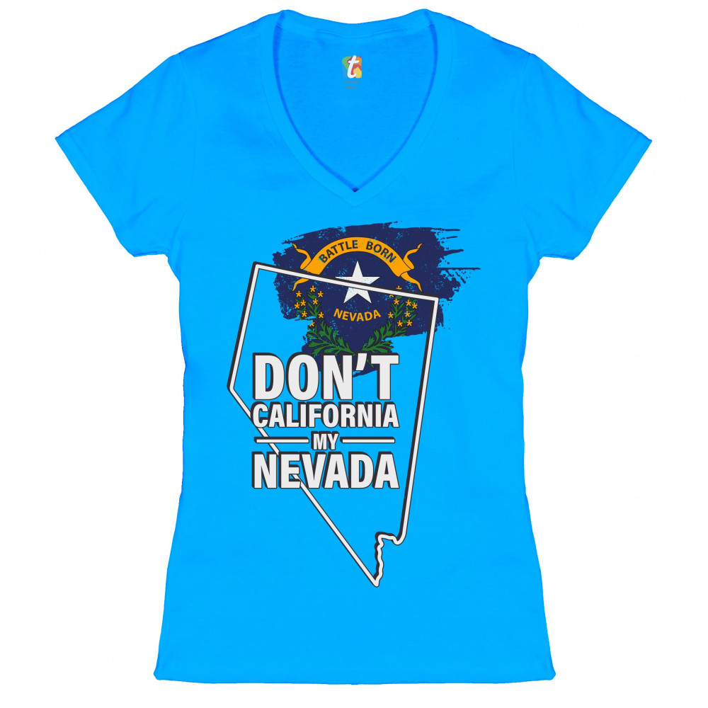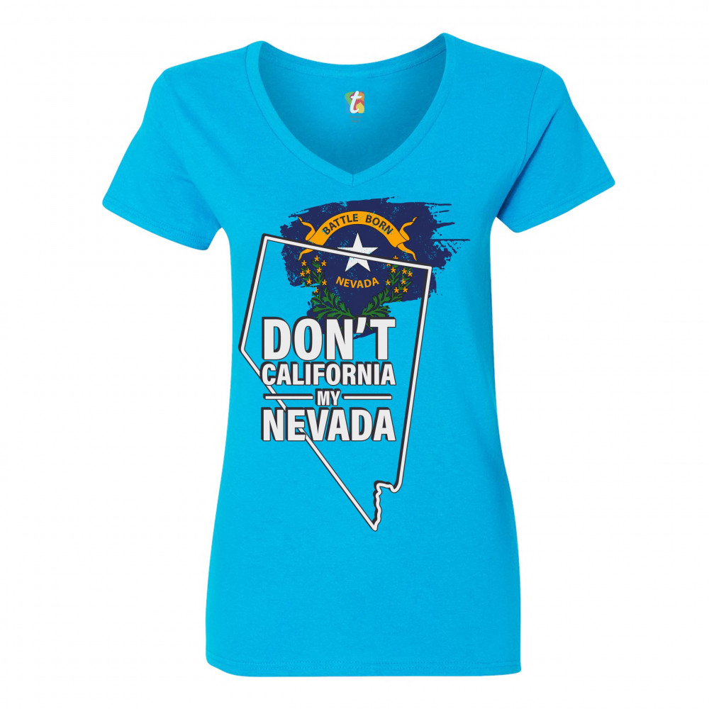 DON'T CALIFORNIA MY NEVADA women's v-neck t-shirt the battle born state tee turquoise