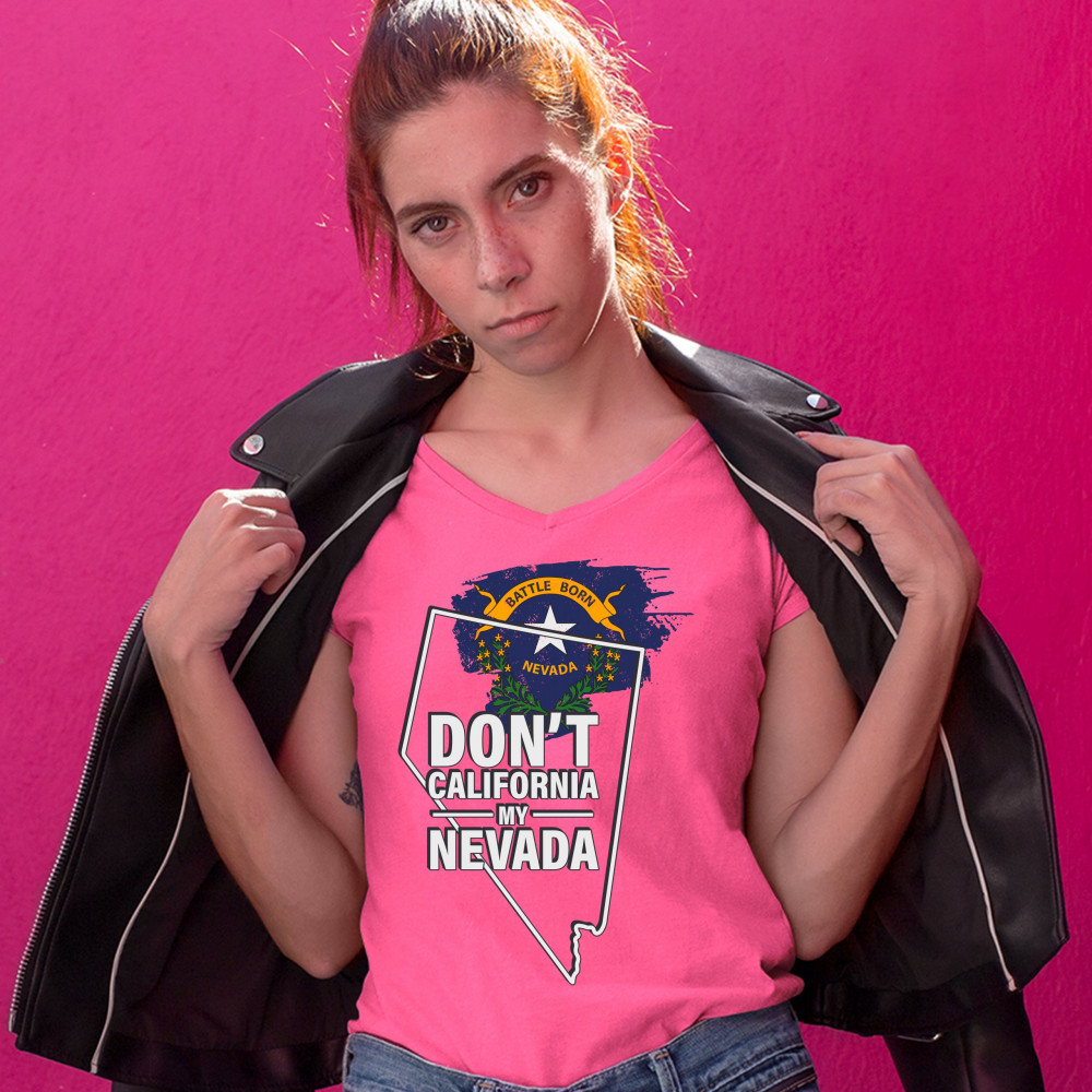 A political print featuring a silhouette of the state of Nevada and it's flag on the inside. The print says: "Don't California my Nevada". A great choice for anyone who is concerned for a huge number of Californians moving to their beloved state.