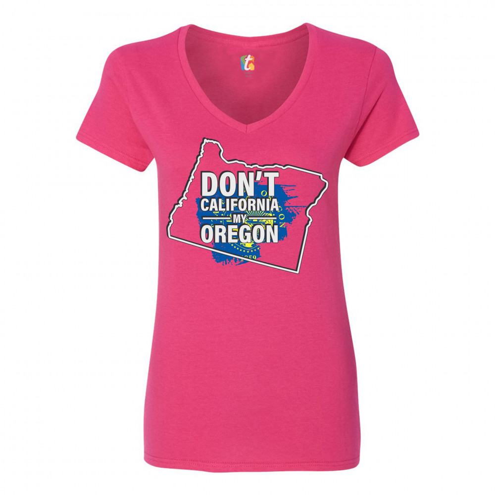 A political print featuring a silhouette of the state of Oregon and the Seal of the State of Oregon inside of it. The print says: "Don't California my Oregon". A great choice for anyone who is concerned for a huge number of Californians moving to their be