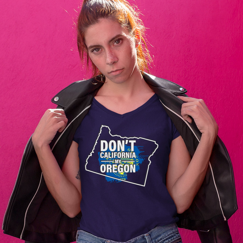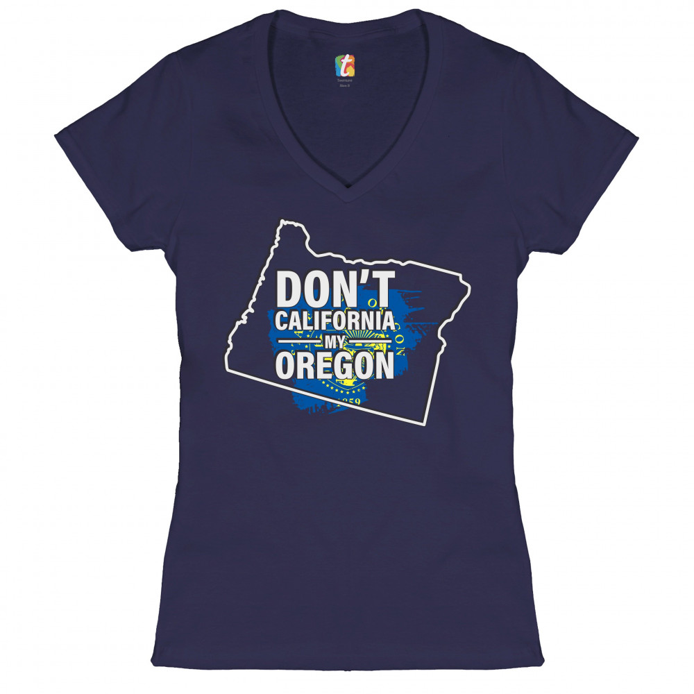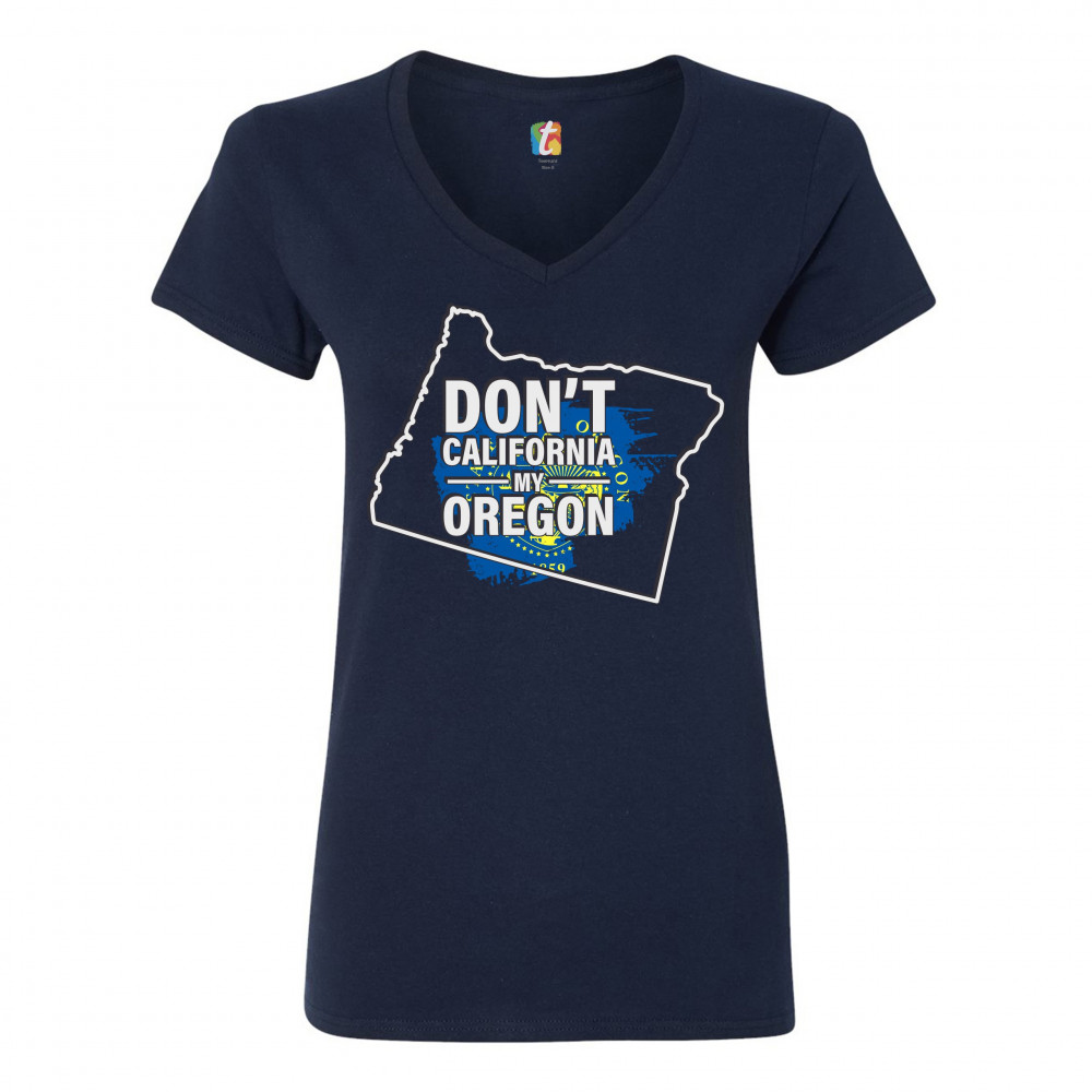 DON'T CALIFORNIA MY OREGON women's v-neck t-shirt the california exodus tee navy blue
