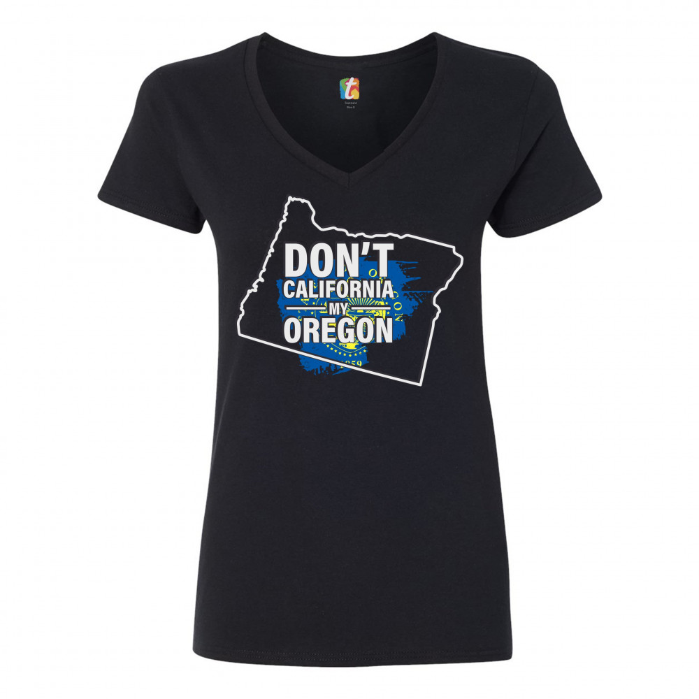 A political print featuring a silhouette of the state of Oregon and the Seal of the State of Oregon inside of it. The print says: "Don't California my Oregon". A great choice for anyone who is concerned for a huge number of Californians moving to their be