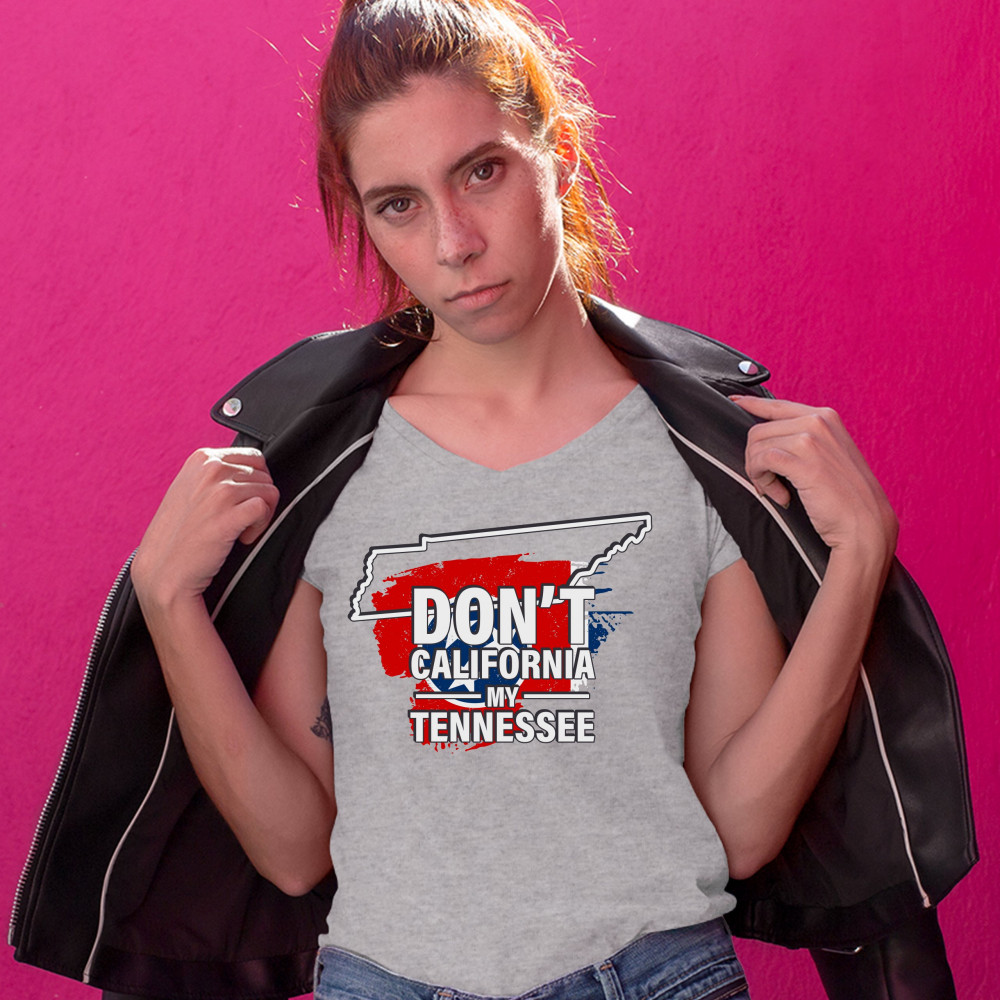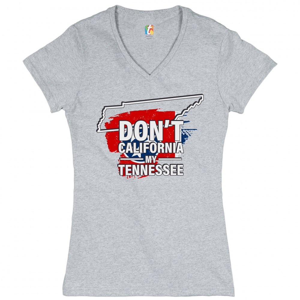 DON'T CALIFORNIA MY TENNESSEE women's v-neck t-shirt funny conservative tee gray