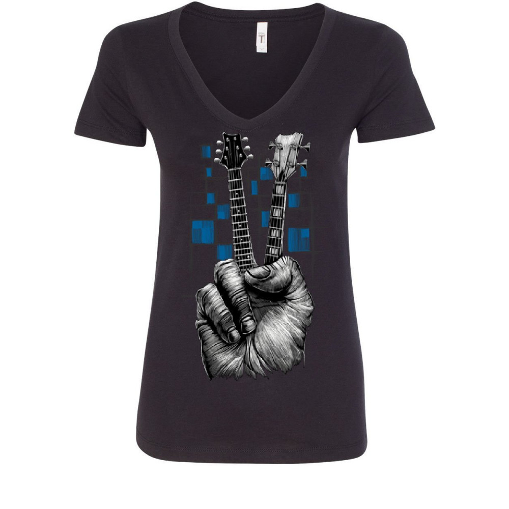 DON'T FRET GUITAR women's v-neck t-shirt rock & roll musician peace sign music black