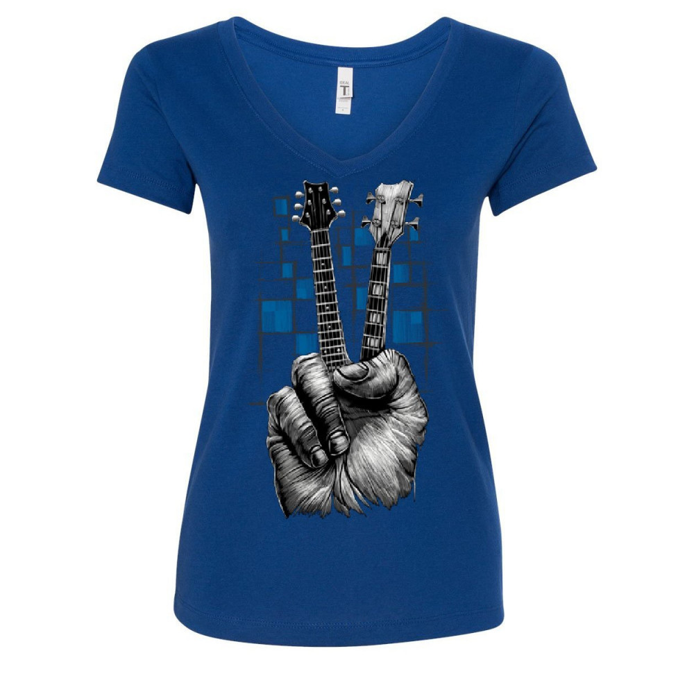 DON'T FRET GUITAR women's v-neck t-shirt rock & roll musician peace sign music royal blue