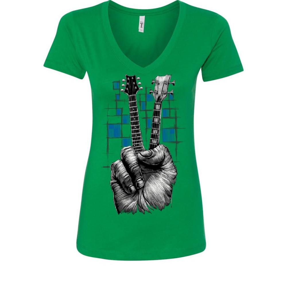 DON'T FRET GUITAR women's v-neck t-shirt rock & roll musician peace sign music green
