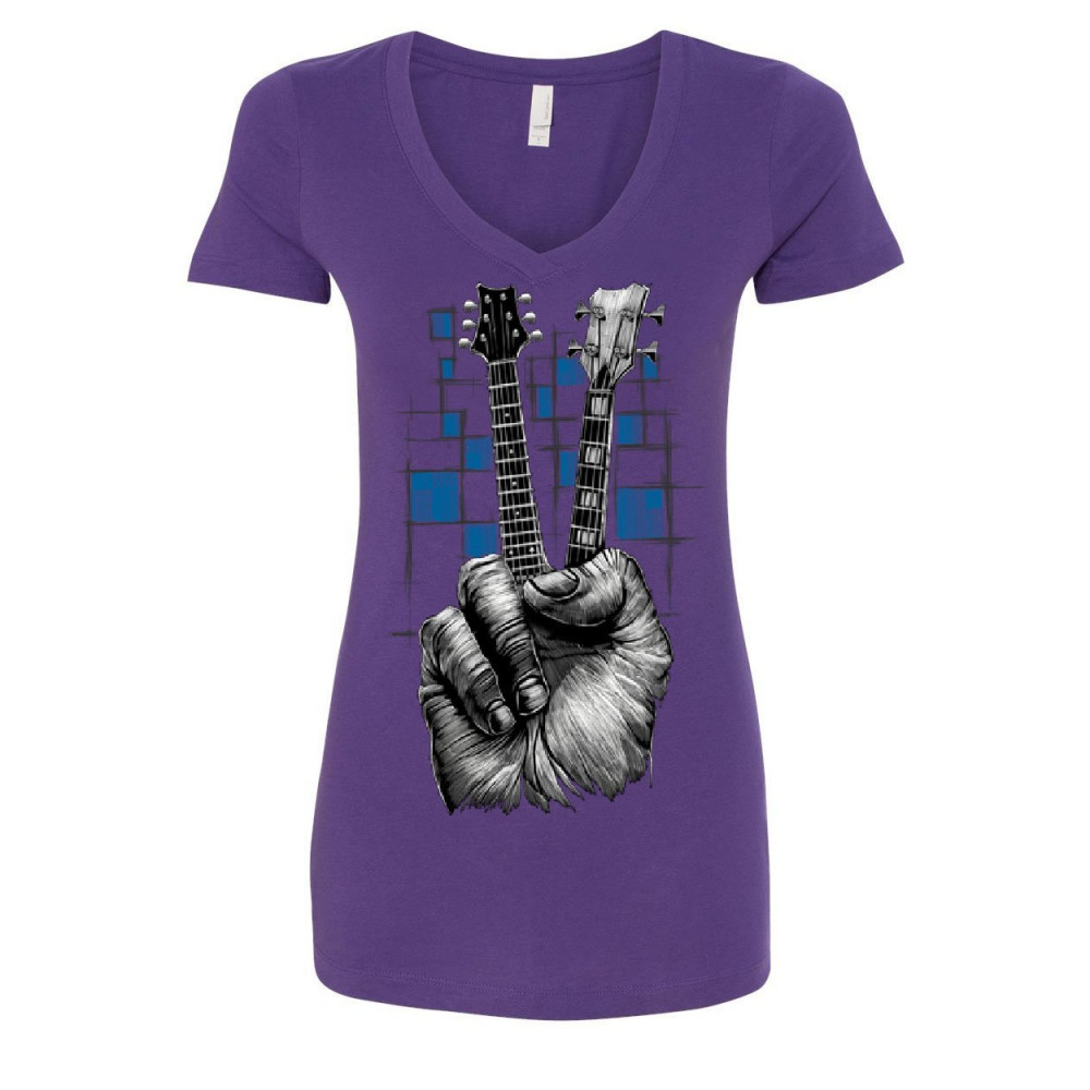 DON'T FRET GUITAR women's v-neck t-shirt rock & roll musician peace sign music purple