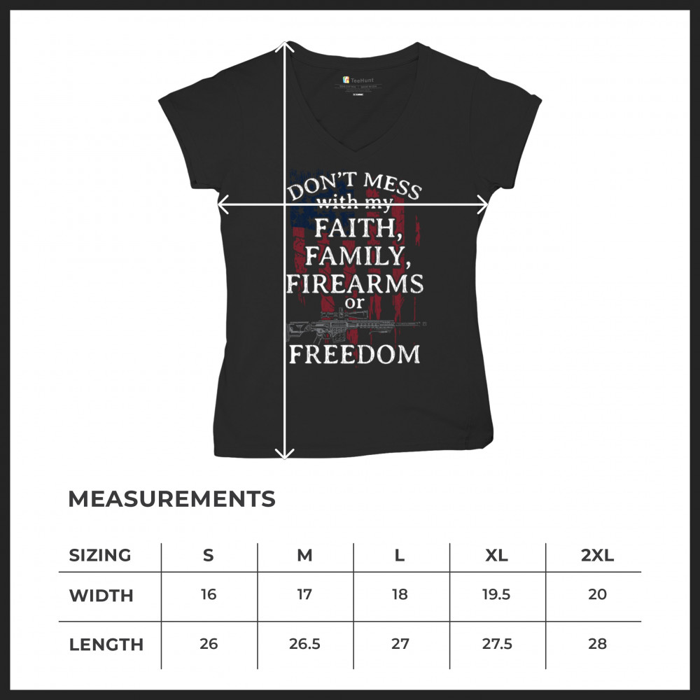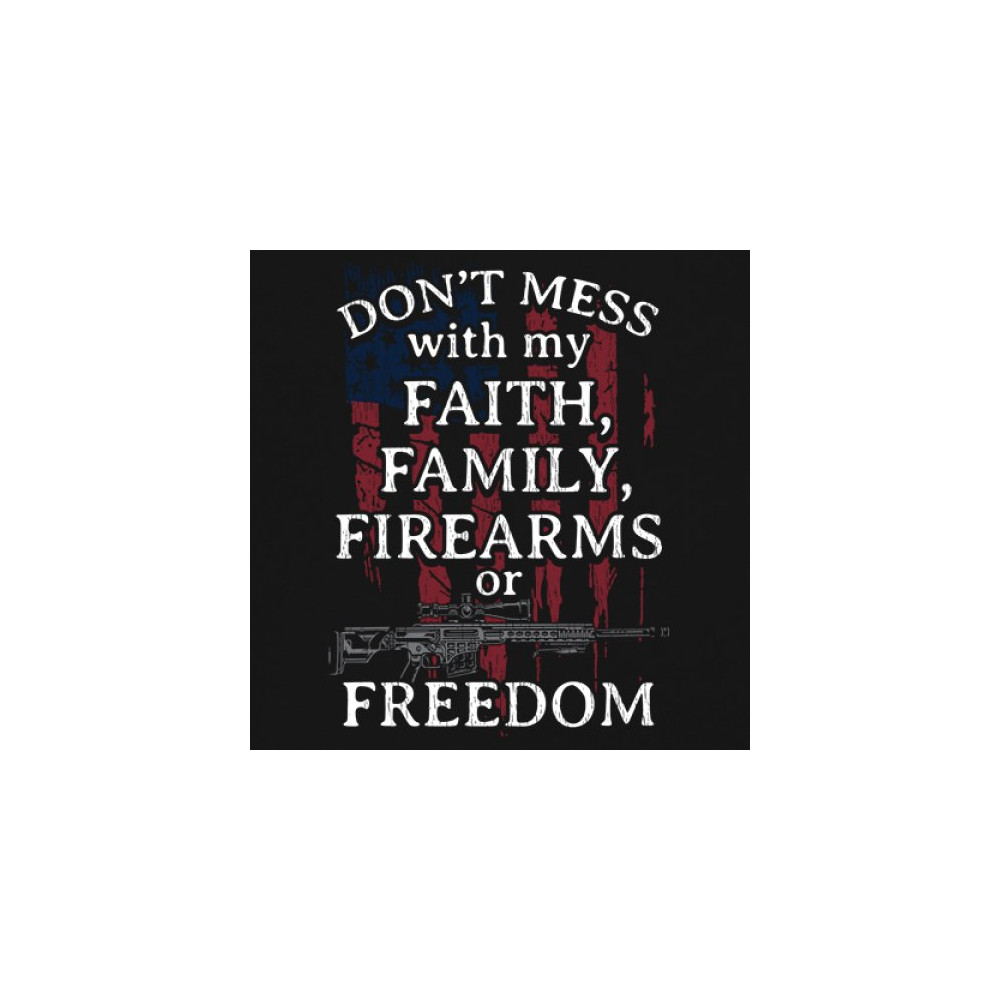 Celebrate your patriotism and core values with this powerful shirt featuring "Don't Mess with My Faith, Family, Firearms, or Freedom" set against a distressed American flag. This shirt is perfect for patriots, veterans, and those who hold their religious beliefs and the right to bear arms in high regard. Made from high-quality fabric, it ensures comfort and durability for everyday wear. Wear it proudly at patriotic events, on the 4th of July, or anytime you want to make a strong statement about your beliefs. It’s an excellent gift for anyone who shares these values and supports the American flag and the stars and stripes.