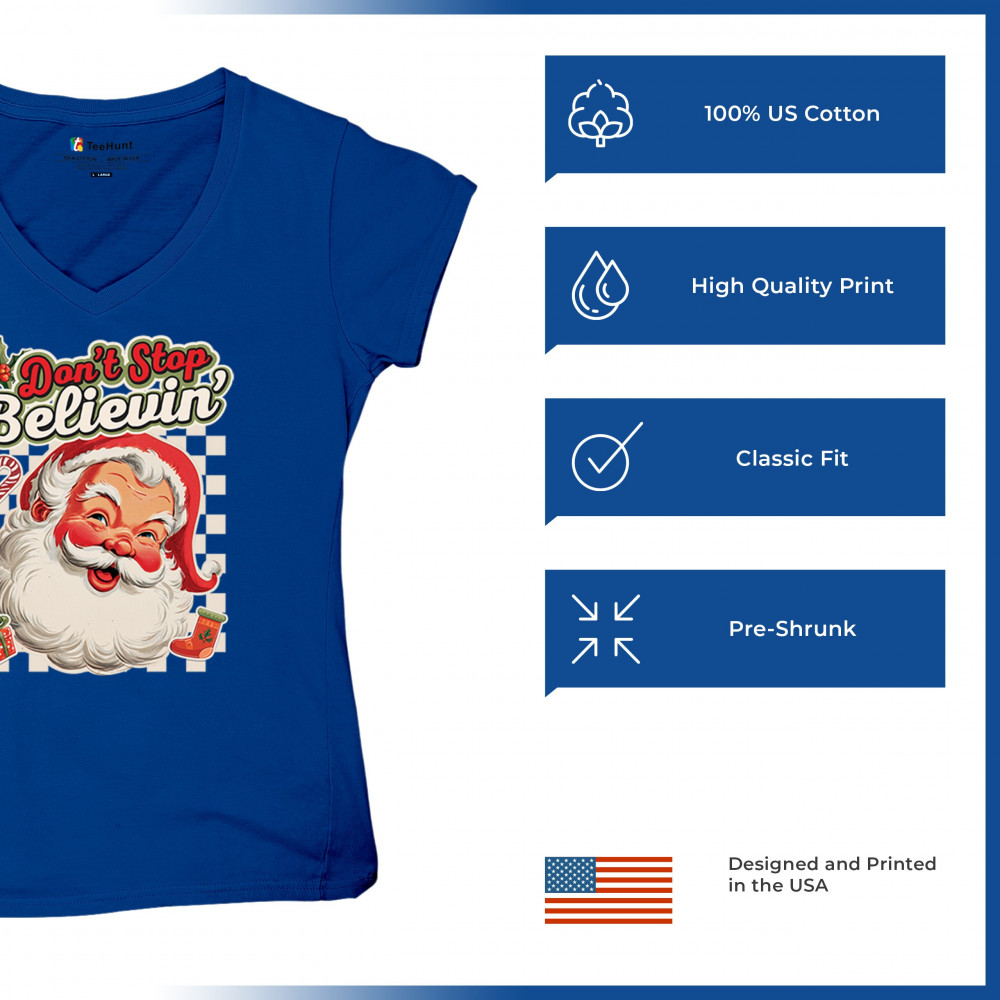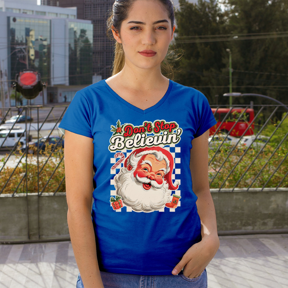 Spread holiday cheer with this “Don’t Stop Believing†Santa Claus shirt that blends classic Christmas spirit with cozy winter charm. Perfect for festive parties, family gatherings, or relaxing by the fire, this design captures Jingle Bells joy, Merry Xmas fun, Santa Claus magic, Reindeer delight, Rudolph glow, Snowman charm, and Christmas tree style for the perfect seasonal outfit.