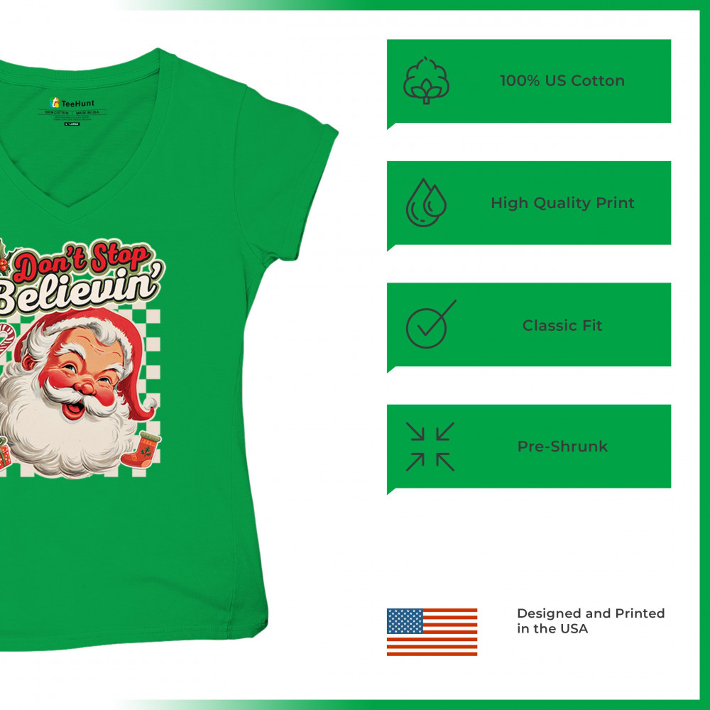 Spread holiday cheer with this “Don’t Stop Believing†Santa Claus shirt that blends classic Christmas spirit with cozy winter charm. Perfect for festive parties, family gatherings, or relaxing by the fire, this design captures Jingle Bells joy, Merry Xmas fun, Santa Claus magic, Reindeer delight, Rudolph glow, Snowman charm, and Christmas tree style for the perfect seasonal outfit.