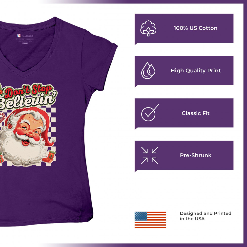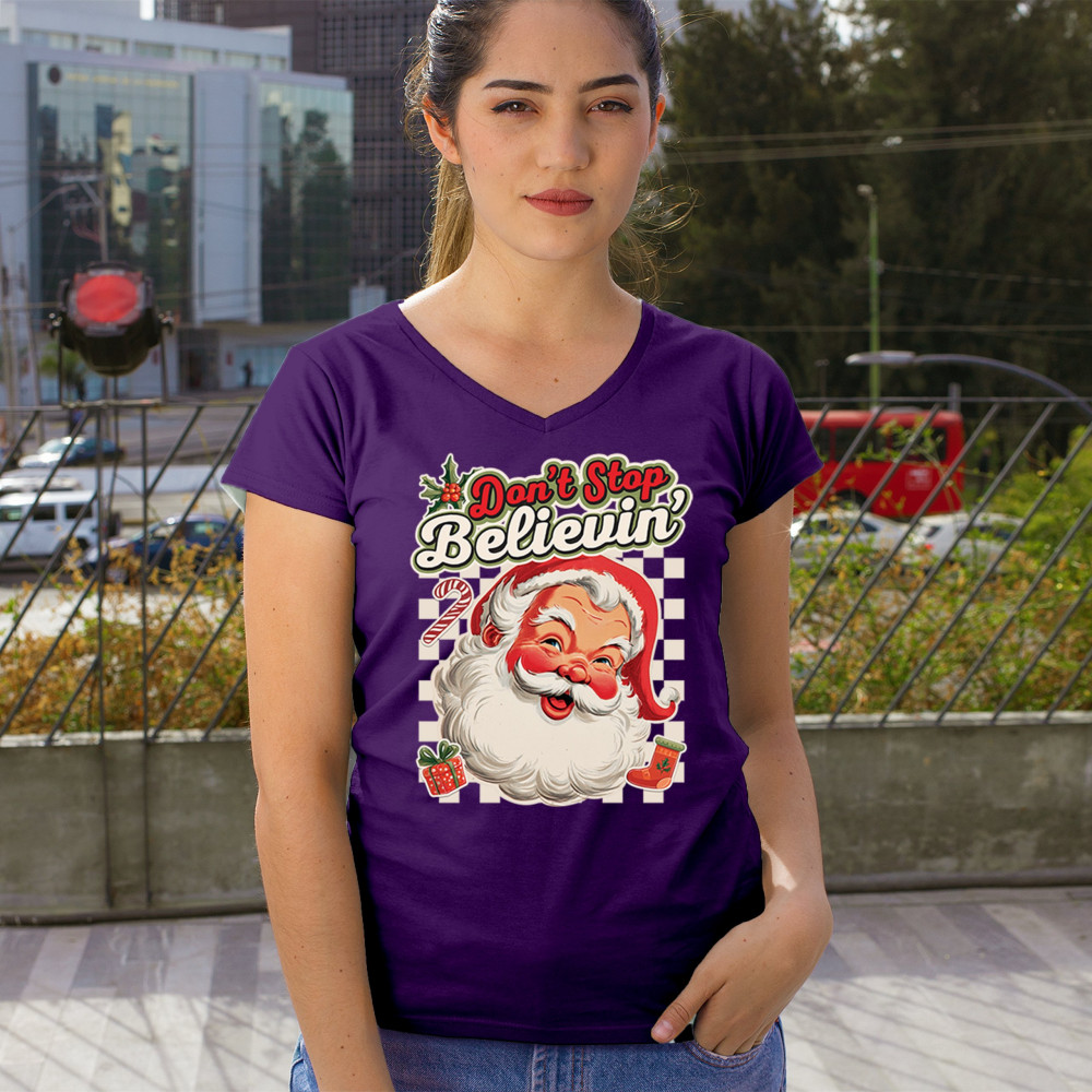 Spread holiday cheer with this “Don’t Stop Believing†Santa Claus shirt that blends classic Christmas spirit with cozy winter charm. Perfect for festive parties, family gatherings, or relaxing by the fire, this design captures Jingle Bells joy, Merry Xmas fun, Santa Claus magic, Reindeer delight, Rudolph glow, Snowman charm, and Christmas tree style for the perfect seasonal outfit.
