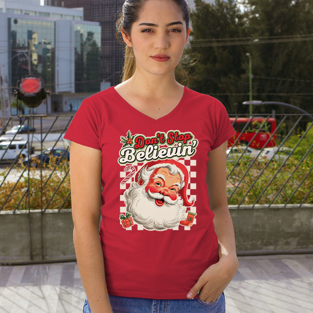 Spread holiday cheer with this “Don’t Stop Believing†Santa Claus shirt that blends classic Christmas spirit with cozy winter charm. Perfect for festive parties, family gatherings, or relaxing by the fire, this design captures Jingle Bells joy, Merry Xmas fun, Santa Claus magic, Reindeer delight, Rudolph glow, Snowman charm, and Christmas tree style for the perfect seasonal outfit.