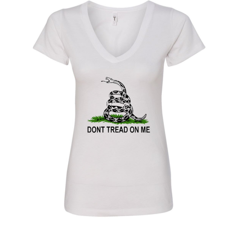 GADSDEN FLAG don't tread on me v-neck t-shirt rattle snake white