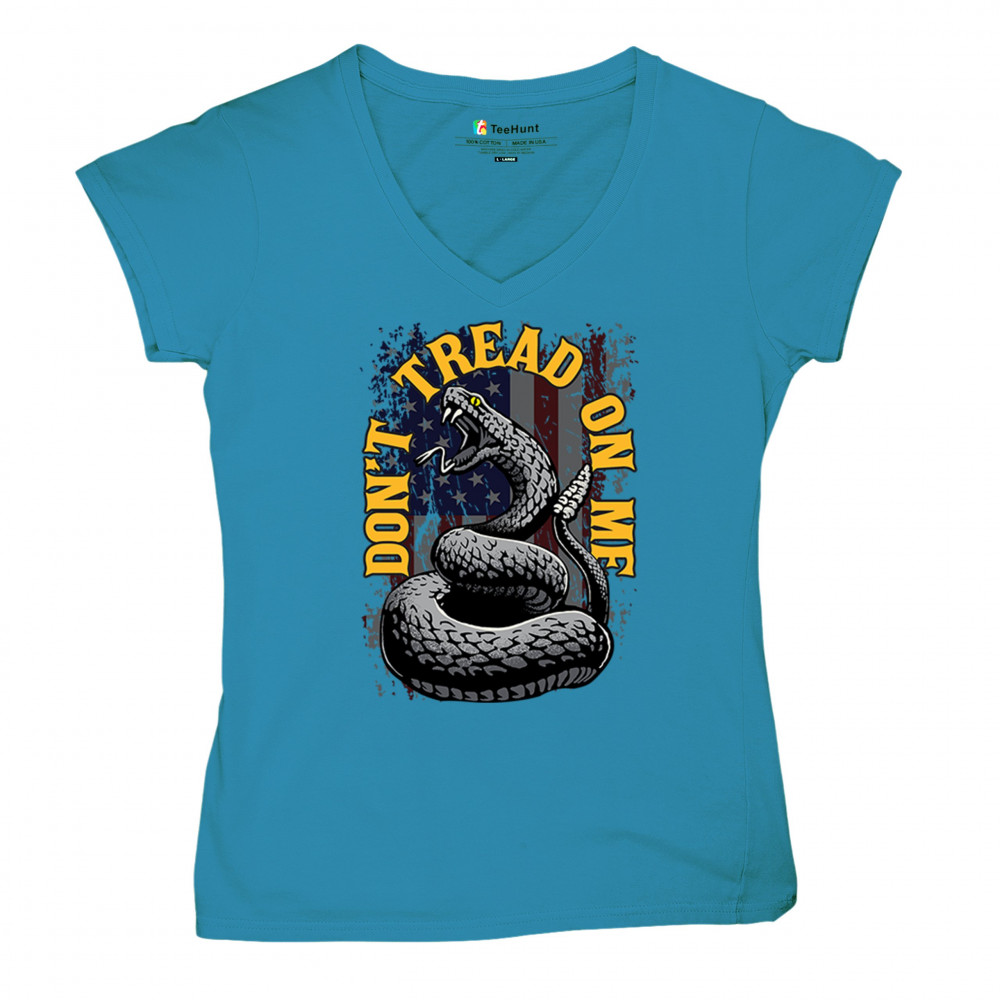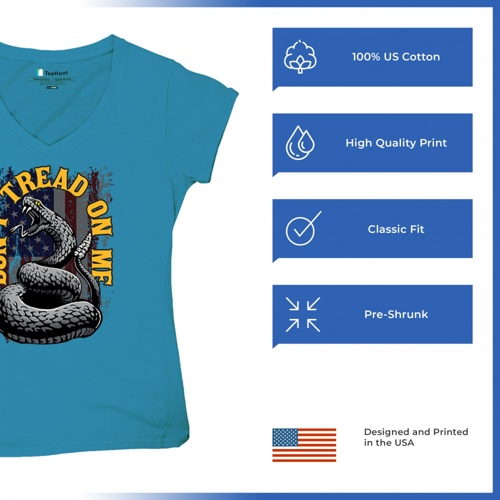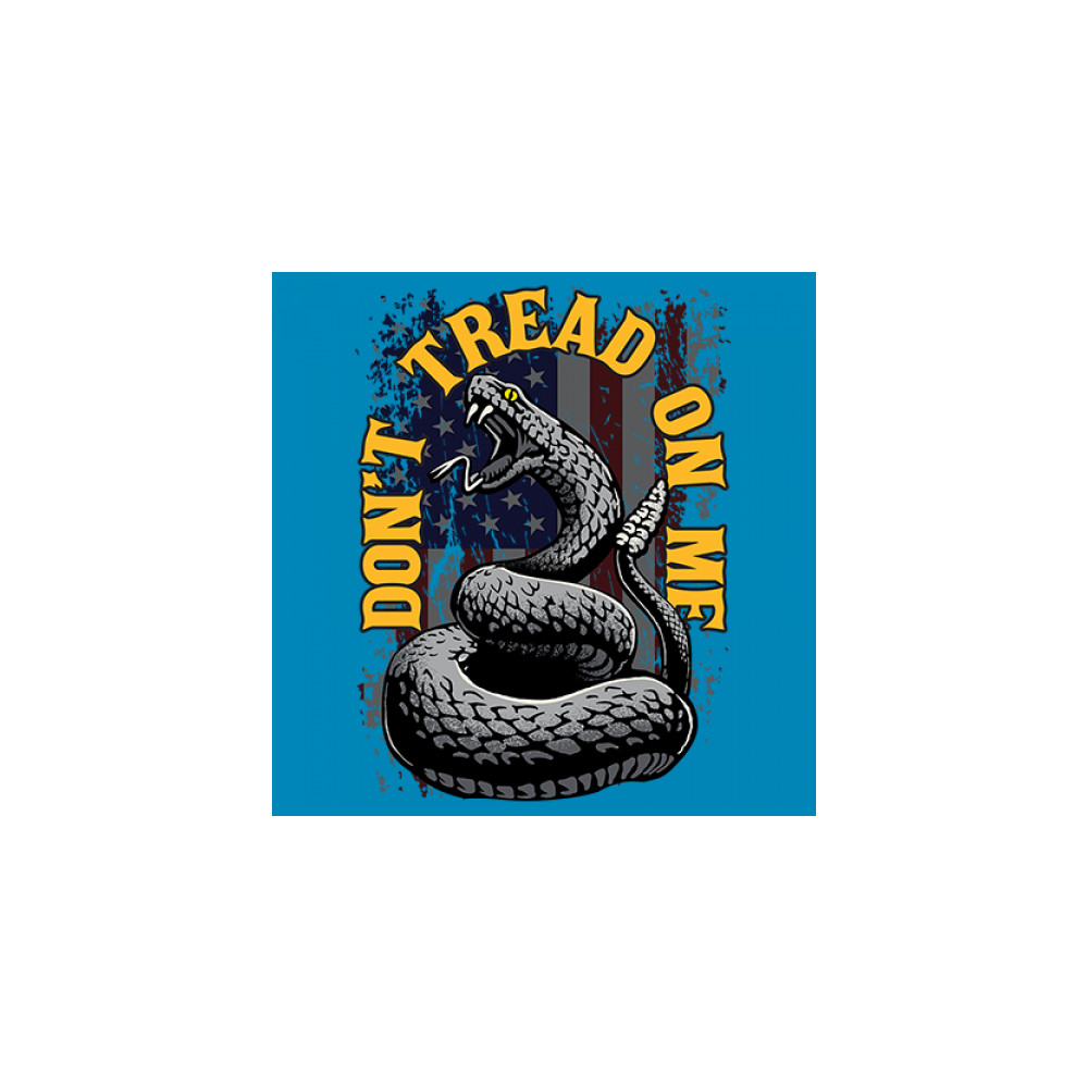 Bold "Don't Tread on Me" design with snake and American flag. Ideal for patriots. Show your love for freedom and independence.