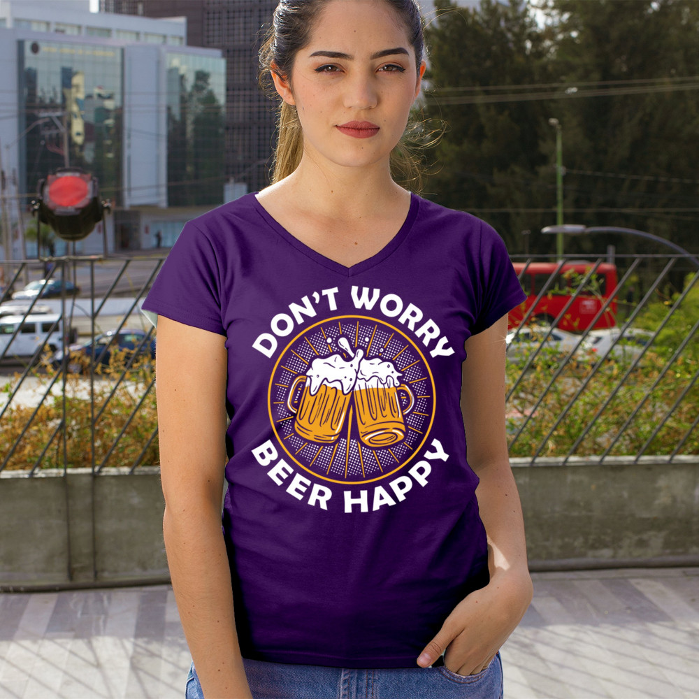 Spread joy with the "Don't Worry, Beer Happy" design, perfect for beer lovers. Ideal for casual outings and social gatherings.