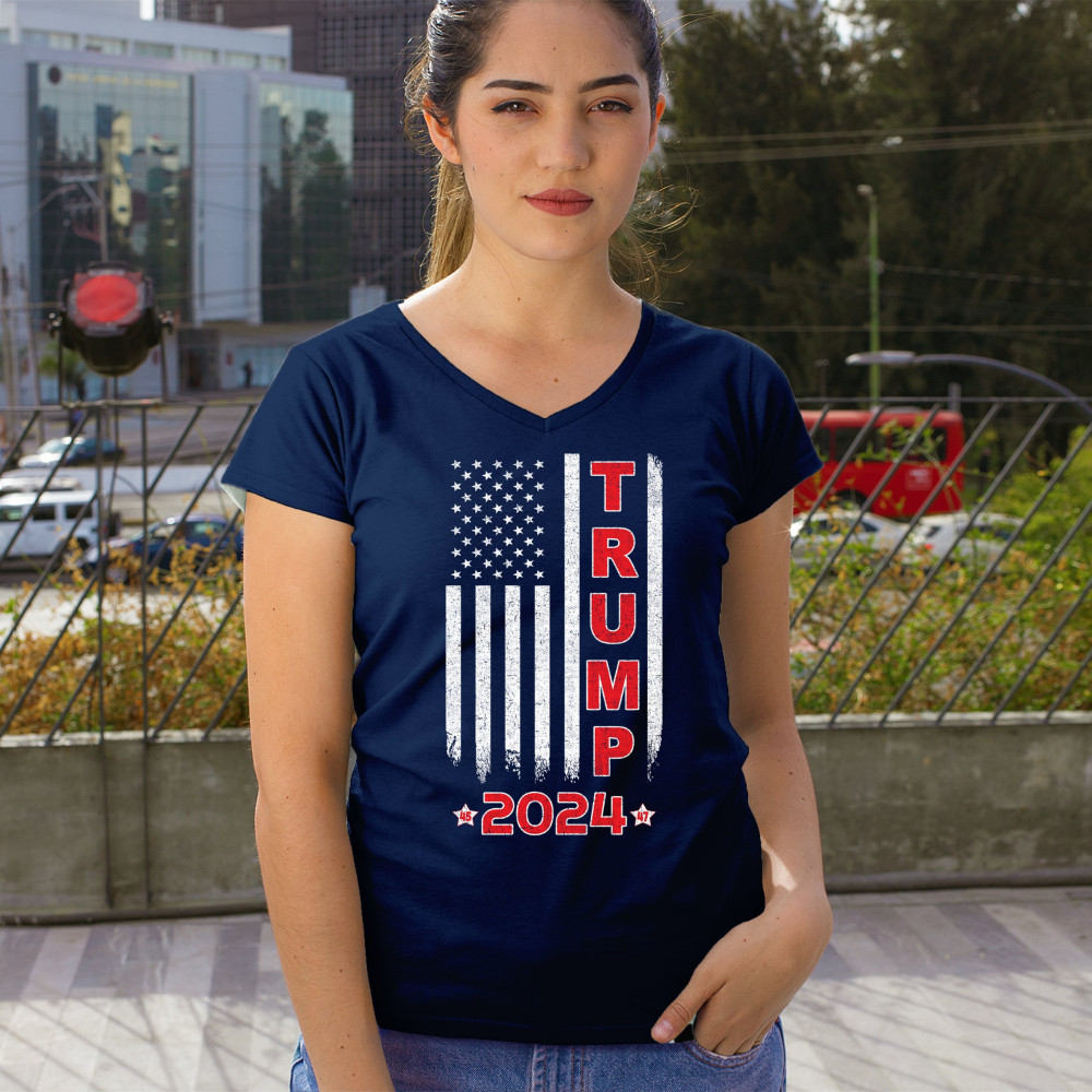Gear up for the next chapter in American history with our Trump American Flag 2024 design, a bold statement of unwavering support for America First values. Featuring the iconic American flag intertwined with a vintage Trump silhouette, this design is a mu