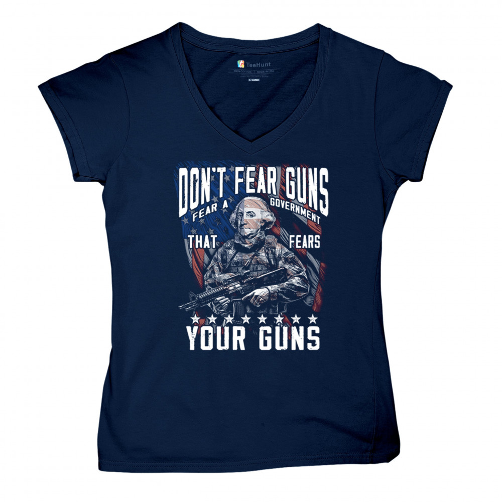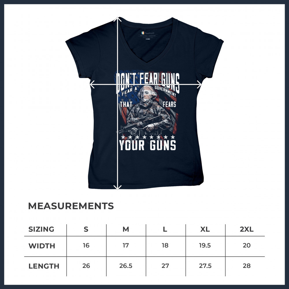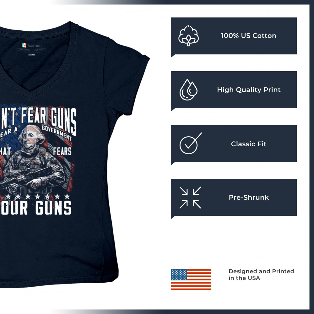 A fierce tribute to liberty, this design shows George Washington armed in tactical gear with the message "Don't Fear Guns, Fear a Government That Fears Your Guns." Perfect for 2nd Amendment patriots, protestors, and anyone who believes in self-defense and personal freedom. A bold, graphic statement for gun rights and political awareness.
