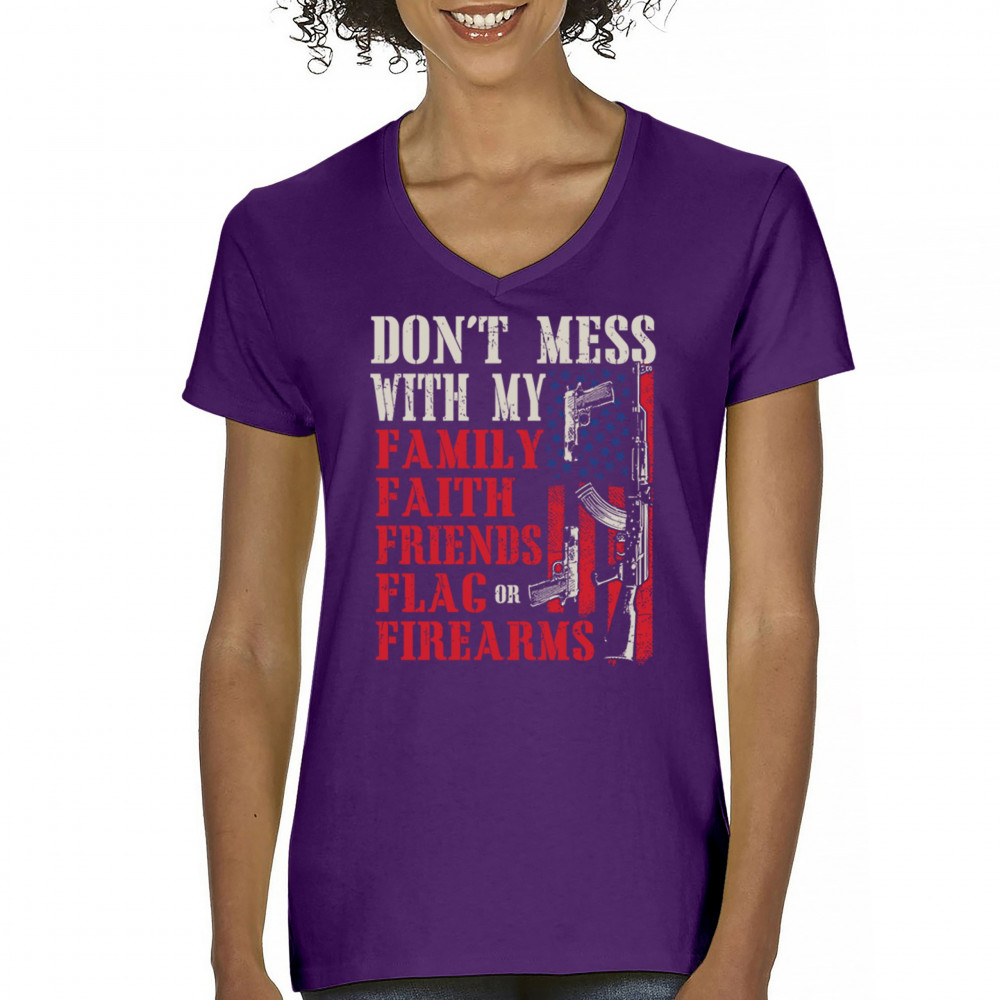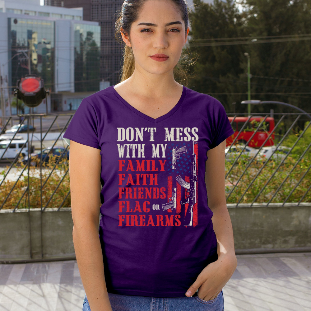 Don’t mess with a patriot’s core. This powerful design shouts loyalty to family, faith, friends, flag, and firearms. Featuring bold lettering on an American flag backdrop, it’s made for defenders of freedom, gun rights, and American values. Ideal for veterans, 2A supporters, and anyone who won’t back down from defending what they love.