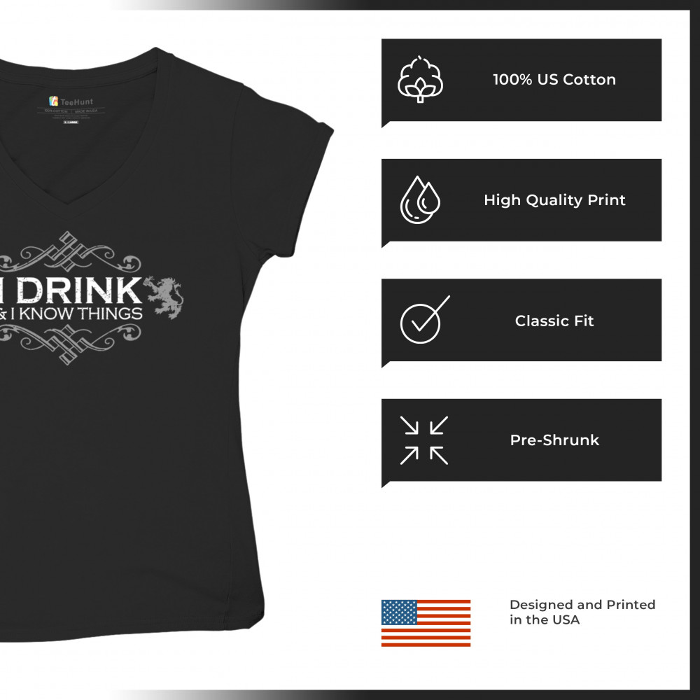 Funny fantasy design with “I Drink and I Know Things†quote, perfect for bar nights, humor lovers, trivia kings, and dry sarcasm fans.