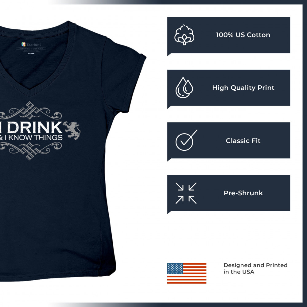 Funny fantasy design with “I Drink and I Know Things†quote, perfect for bar nights, humor lovers, trivia kings, and dry sarcasm fans.