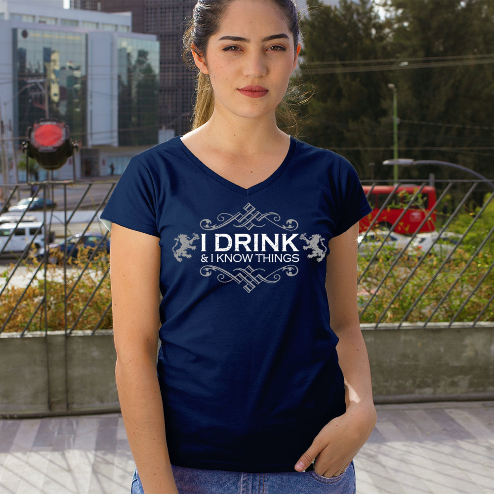 Show off your wit with the “I Drink and I Know Things†design, styled with medieval scrollwork and regal lions. Whether you're holding a pint at the bar, leading trivia night, or binge-watching fantasy series, this bold and funny piece is made for those who love drinking, sarcasm, and clever quotes with timeless flair.