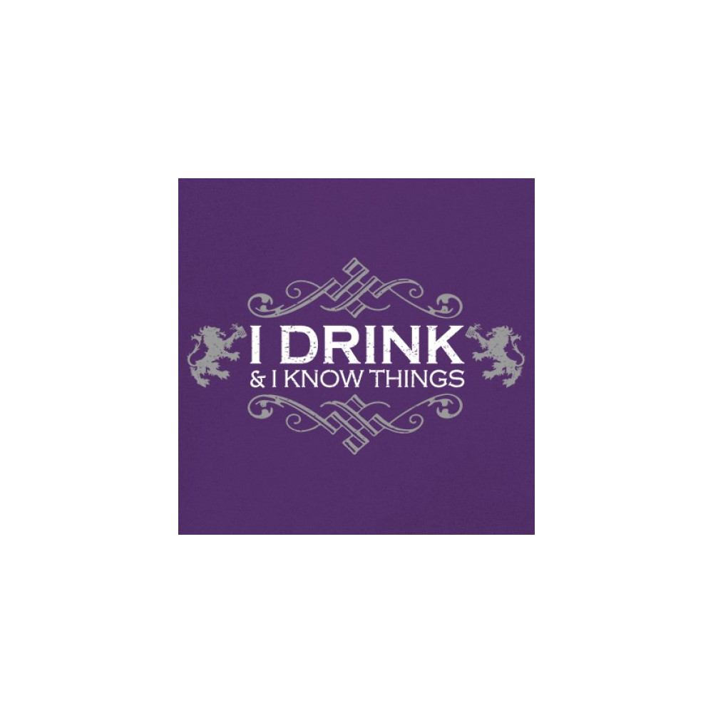 Funny fantasy design with “I Drink and I Know Things†quote, perfect for bar nights, humor lovers, trivia kings, and dry sarcasm fans.