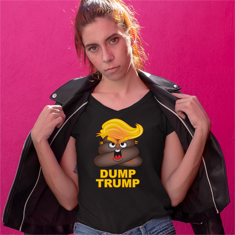 DUMP TRUMP women's v-neck t-shirt anti trump funny poop turd 2020 election tee black