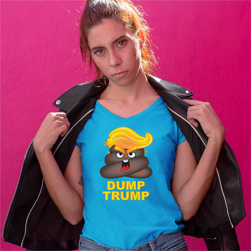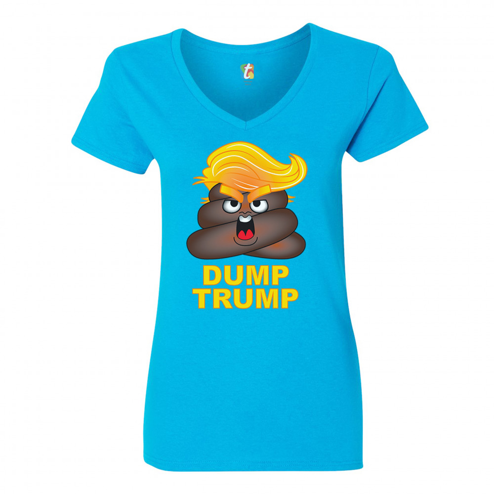 DUMP TRUMP women's v-neck t-shirt anti trump funny poop turd 2020 election tee turquoise