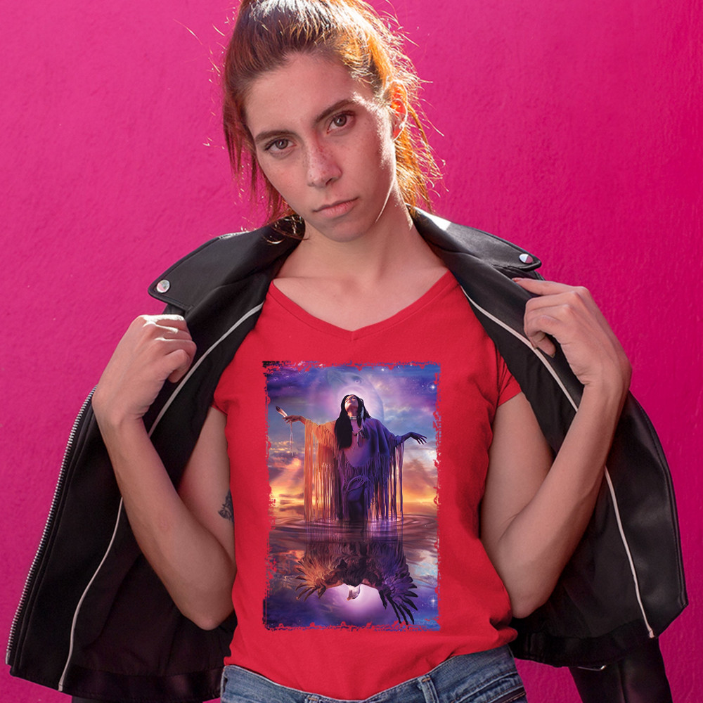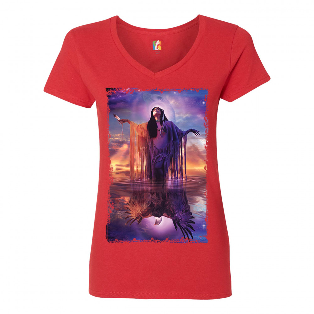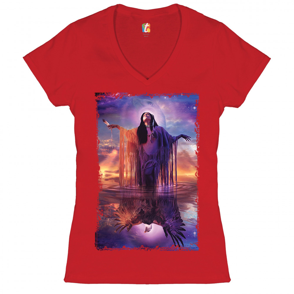 EAGLE SPIRIT women's v-neck t-shirt native american shaman indigenous tee red