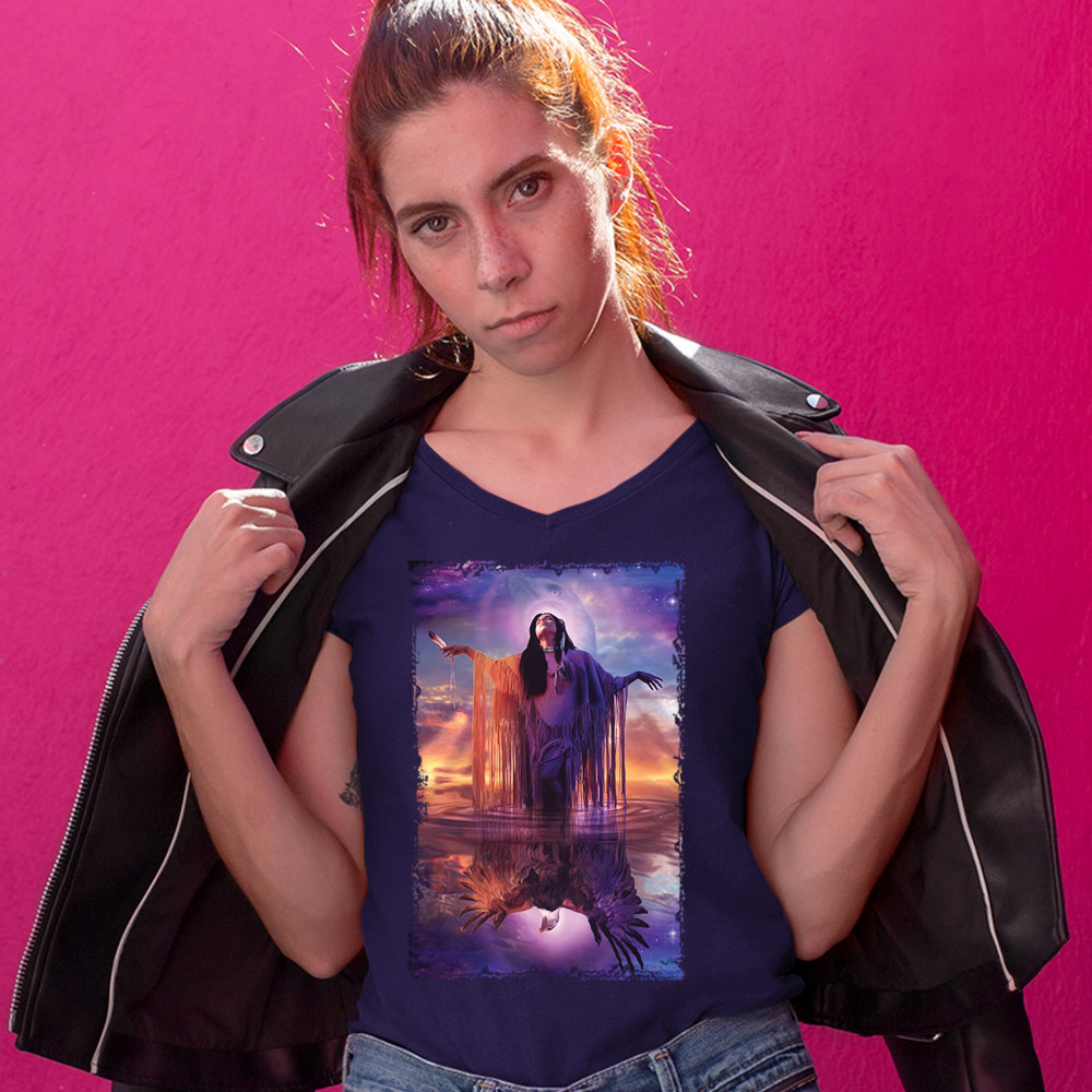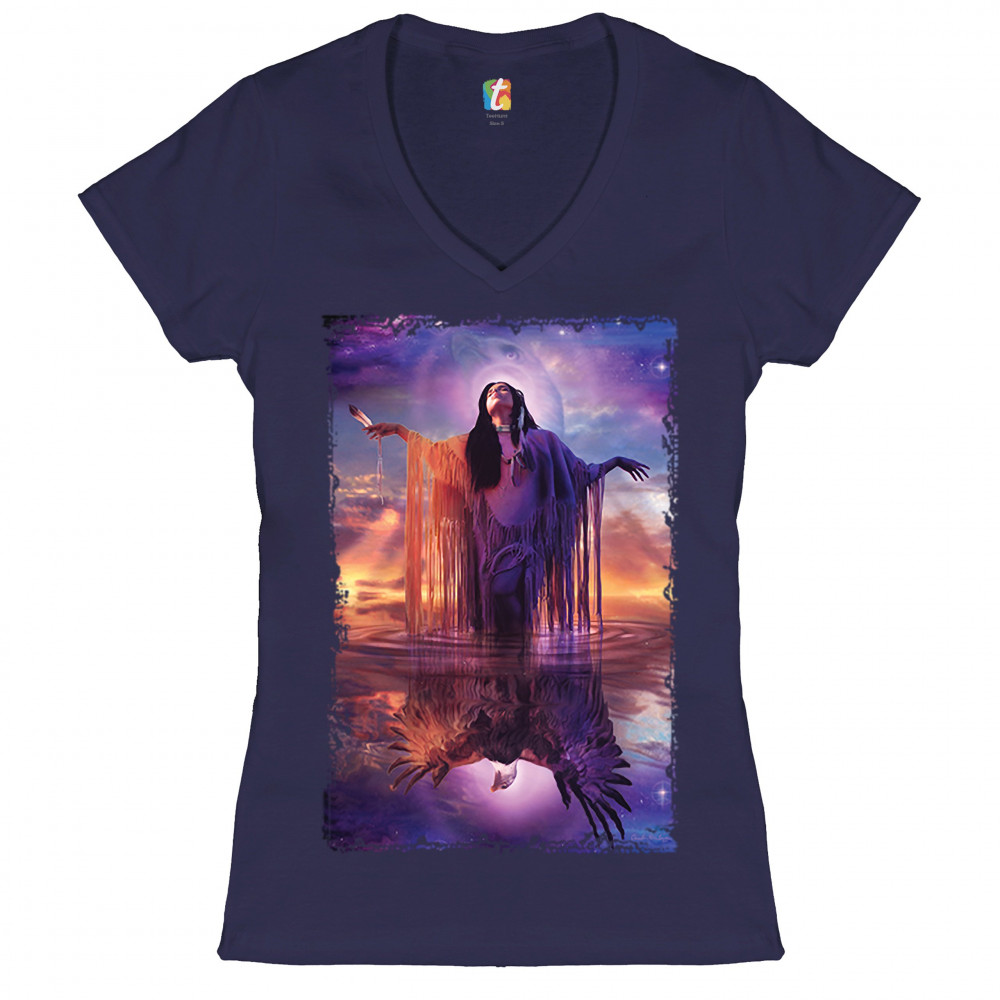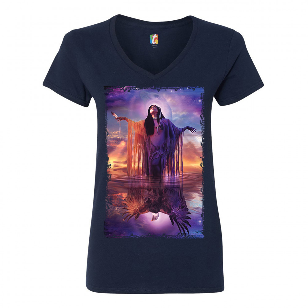 EAGLE SPIRIT women's v-neck t-shirt native american shaman indigenous tee navy blue
