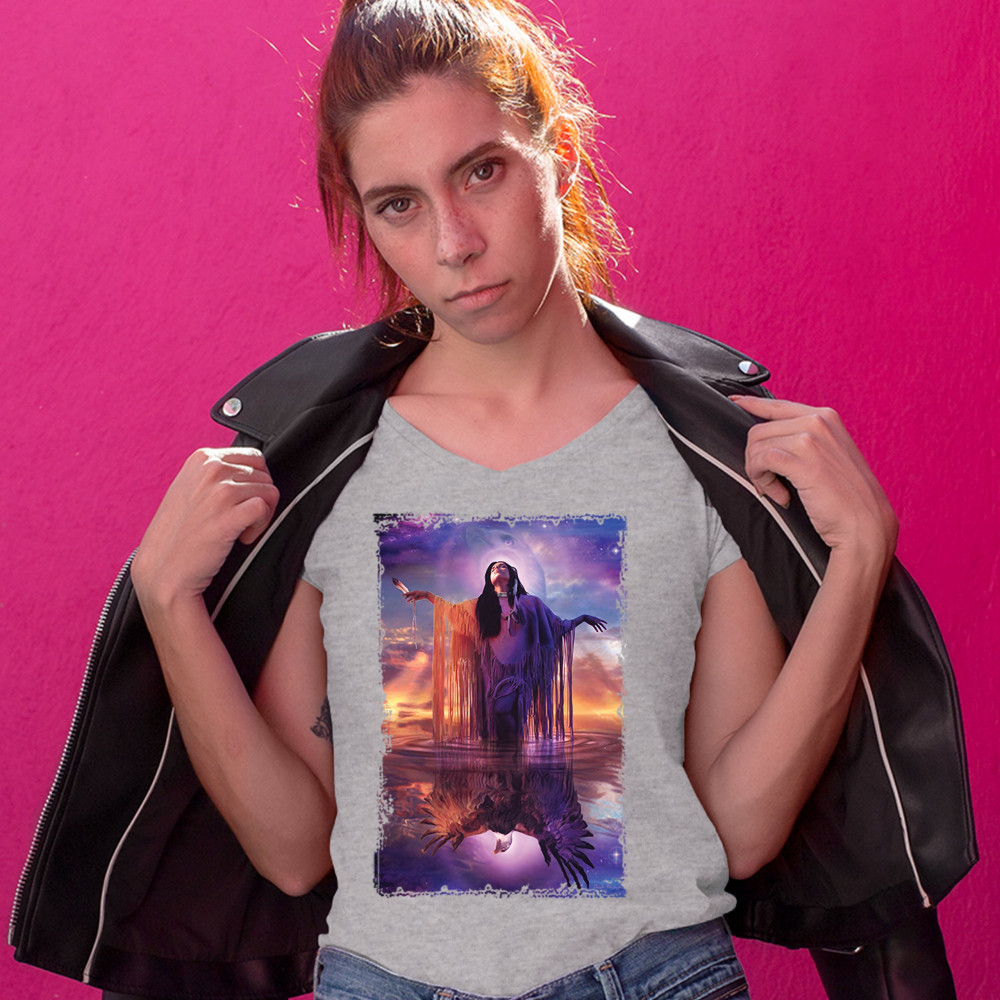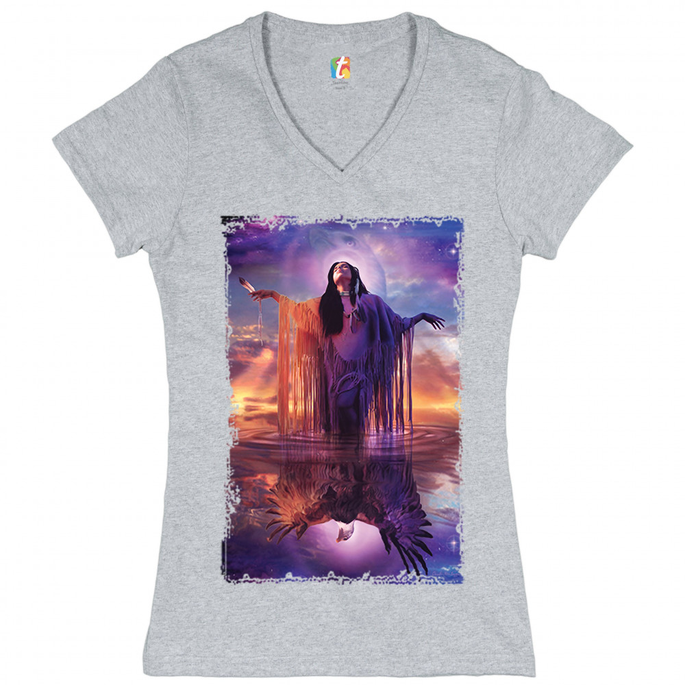 EAGLE SPIRIT women's v-neck t-shirt native american shaman indigenous tee gray