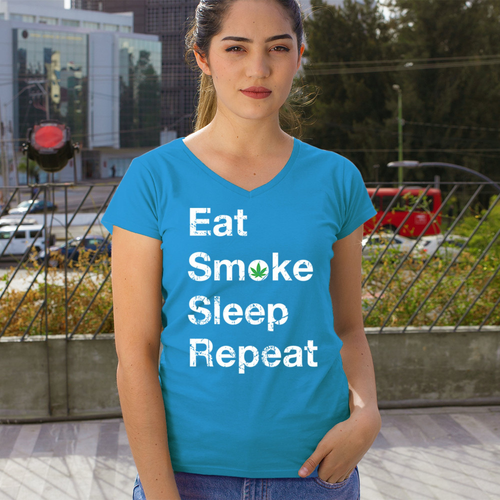 Eat Smoke Sleep Repeat design with weed leaf humor. Great for 420 fans, stoners, sesh lovers, smokers, and relaxed cannabis vibes.