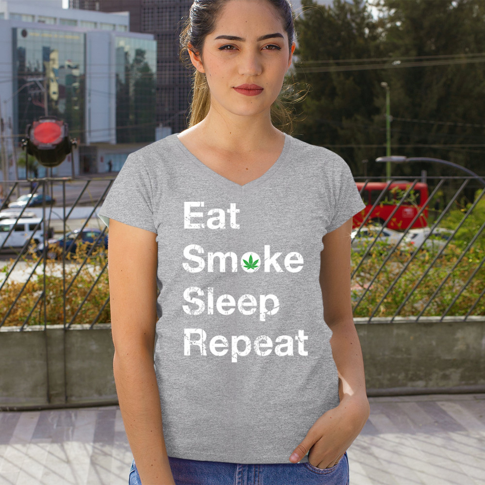 Eat Smoke Sleep Repeat design with weed leaf humor. Great for 420 fans, stoners, sesh lovers, smokers, and relaxed cannabis vibes.