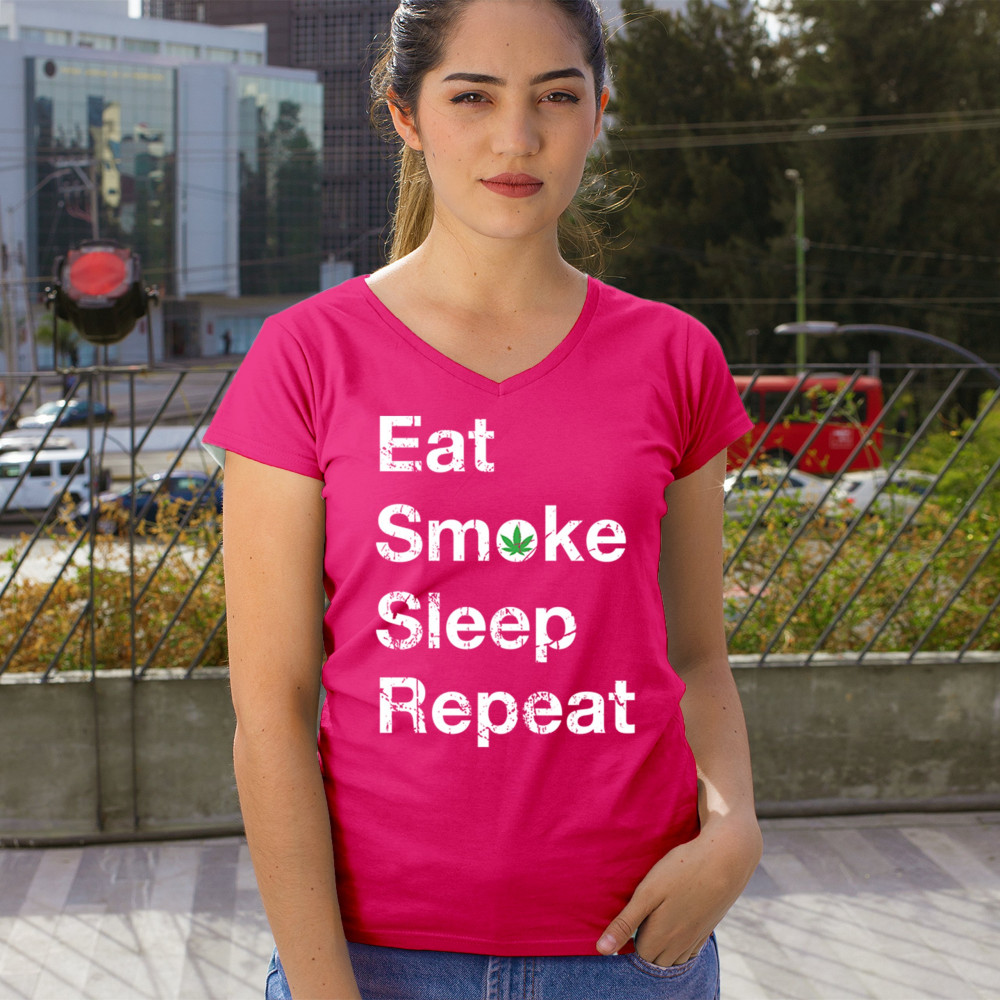 Eat Smoke Sleep Repeat design with weed leaf humor. Great for 420 fans, stoners, sesh lovers, smokers, and relaxed cannabis vibes.