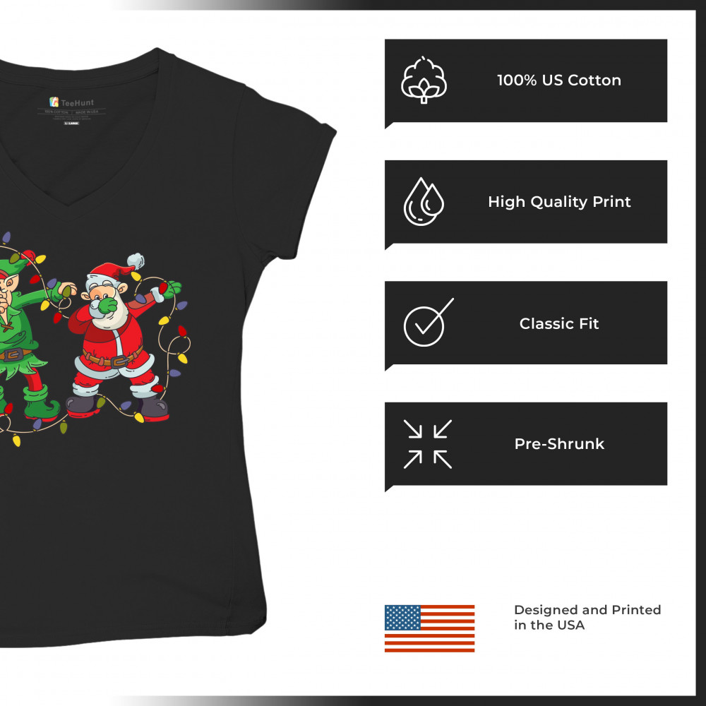 ELF AND SANTA CLAUS DAB DANCING women's v-neck t-shirt merry christmas tee black