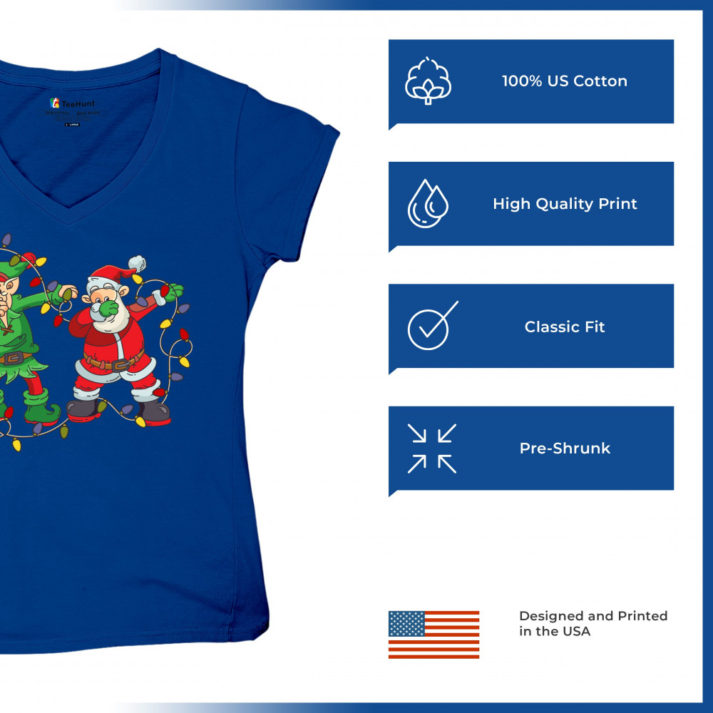 ELF AND SANTA CLAUS DAB DANCING women's v-neck t-shirt merry christmas tee royal blue
