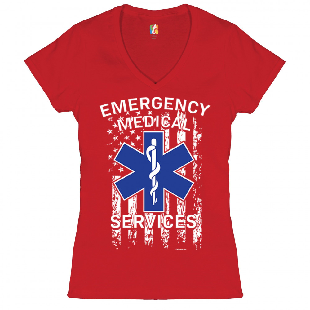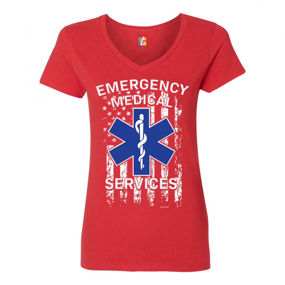 EMERGENCY MEDICAL SERVICES women's v-neck t-shirt american flag ems emt tee red