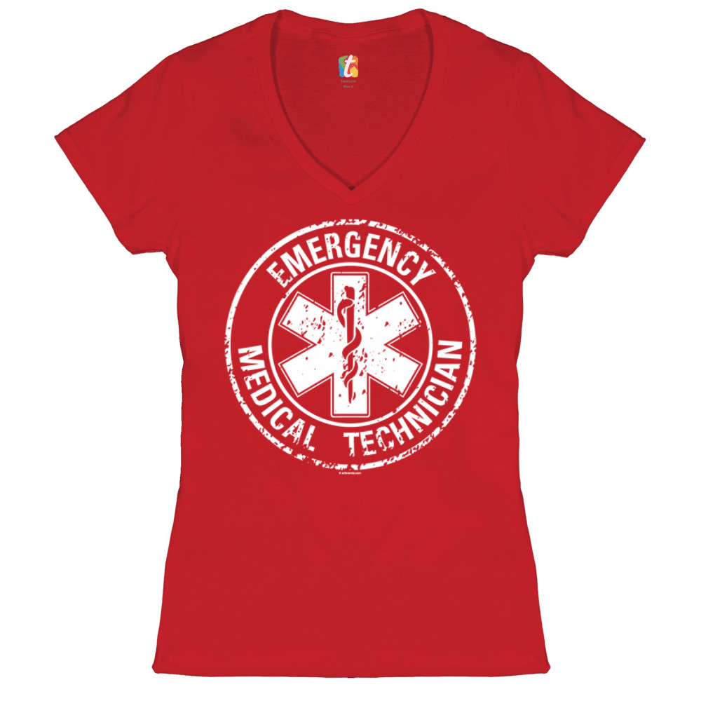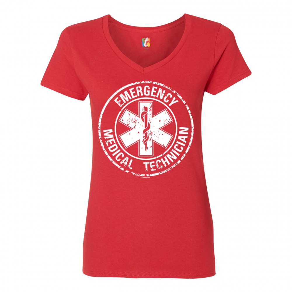 EMERGENCY MEDICAL TECHNICIAN women's v-neck t-shirt emt distressed ems tee red