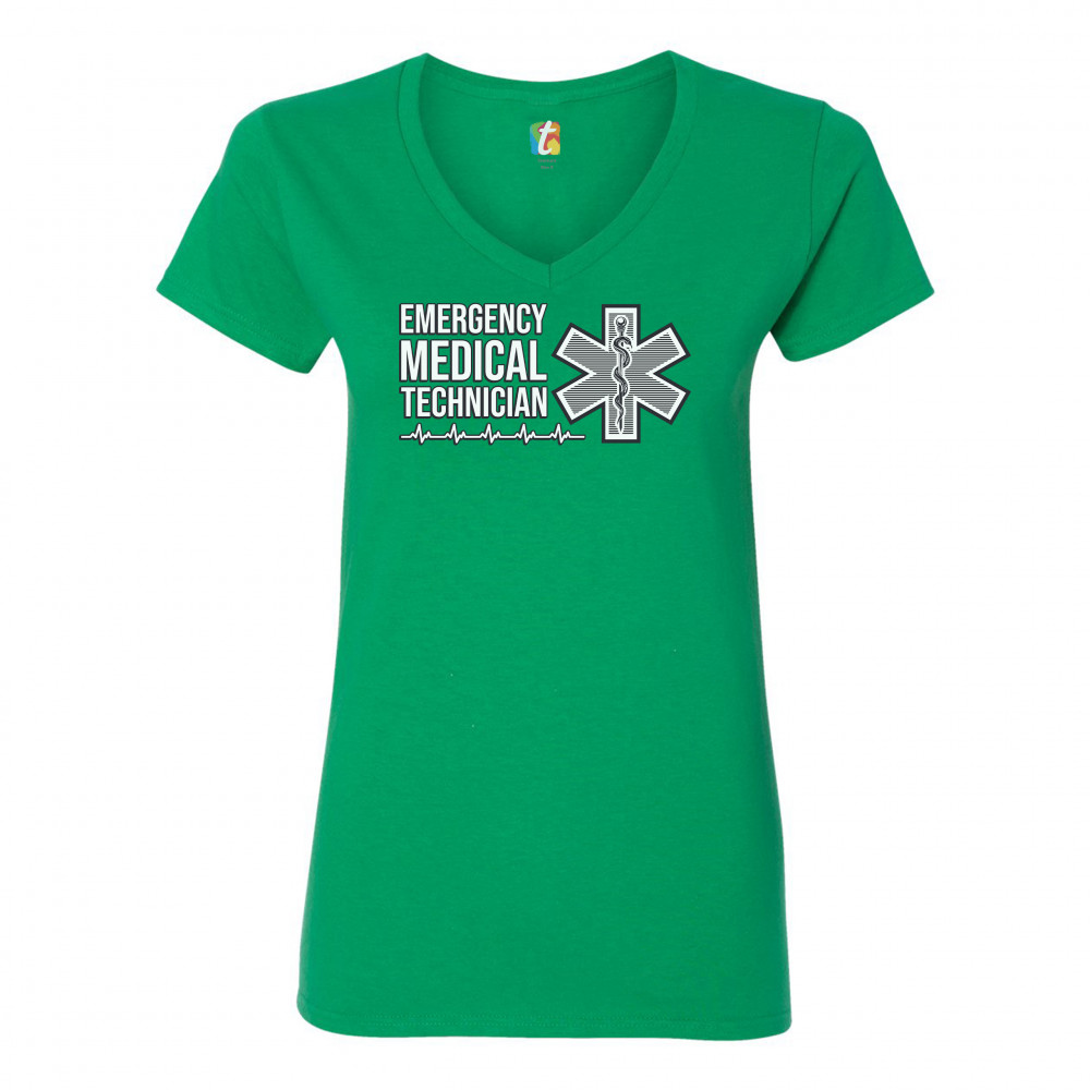 EMERGENCY MEDICAL TECHNICIAN women's v-neck t-shirt emt first responder tee green