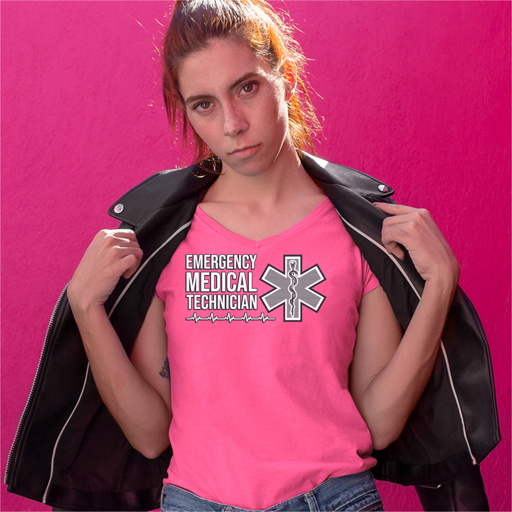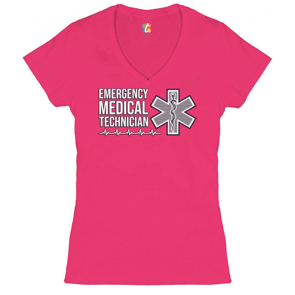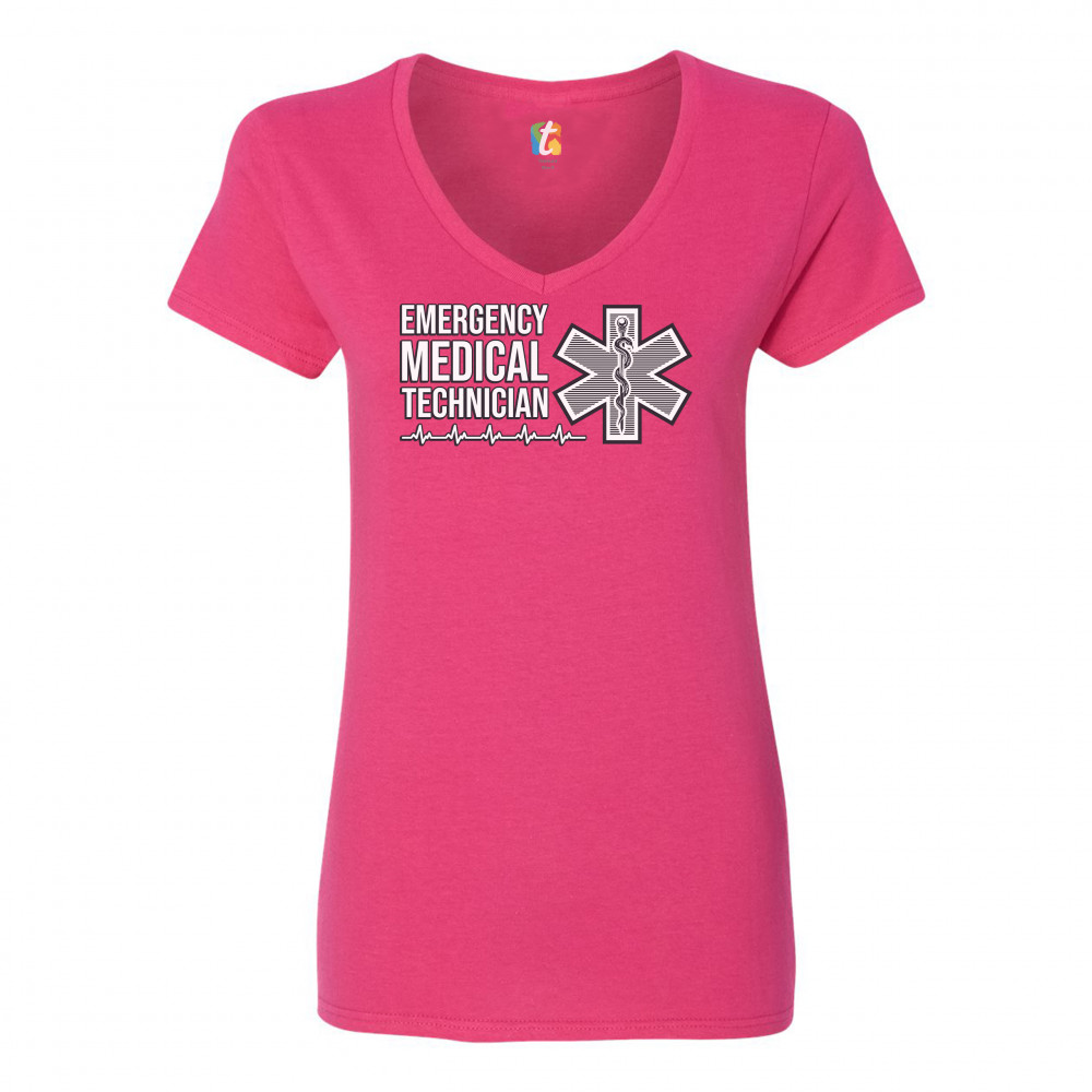 EMERGENCY MEDICAL TECHNICIAN women's v-neck t-shirt emt first responder tee pink