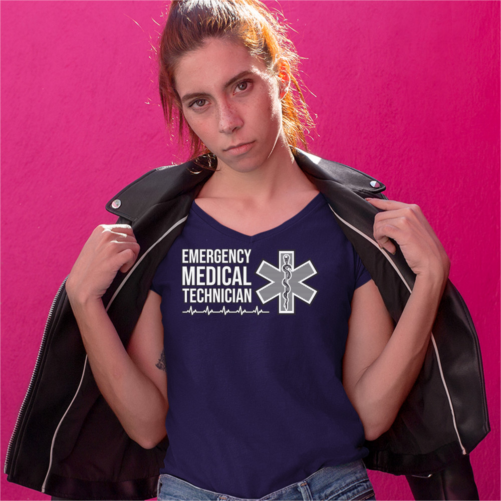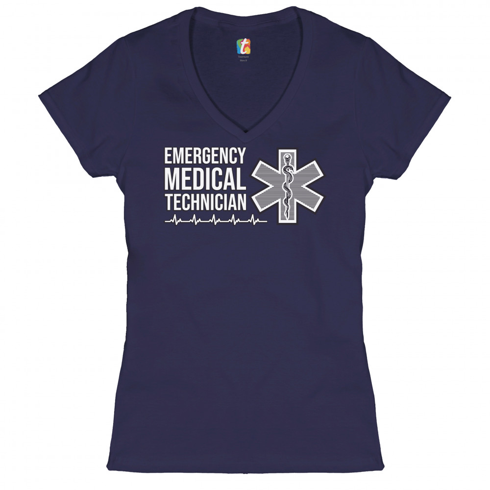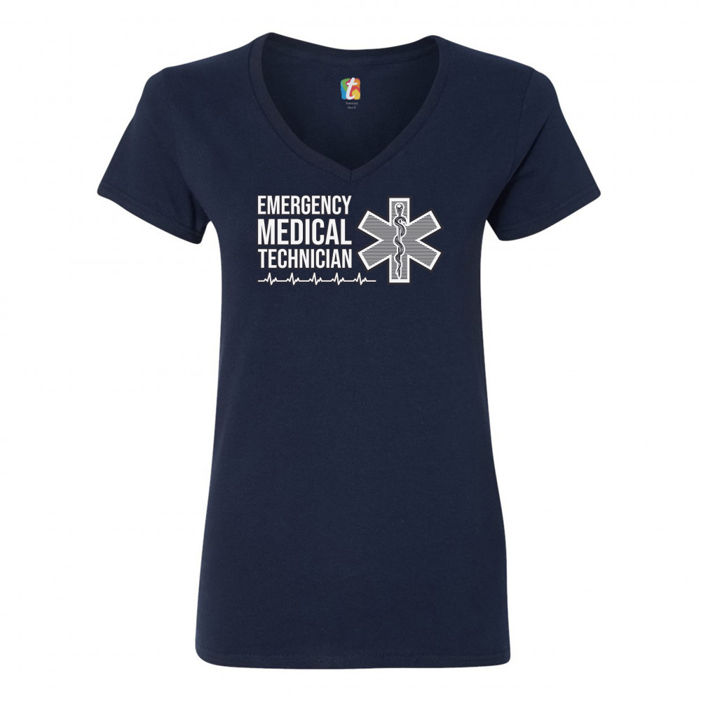 EMERGENCY MEDICAL TECHNICIAN women's v-neck t-shirt emt first responder tee navy blue