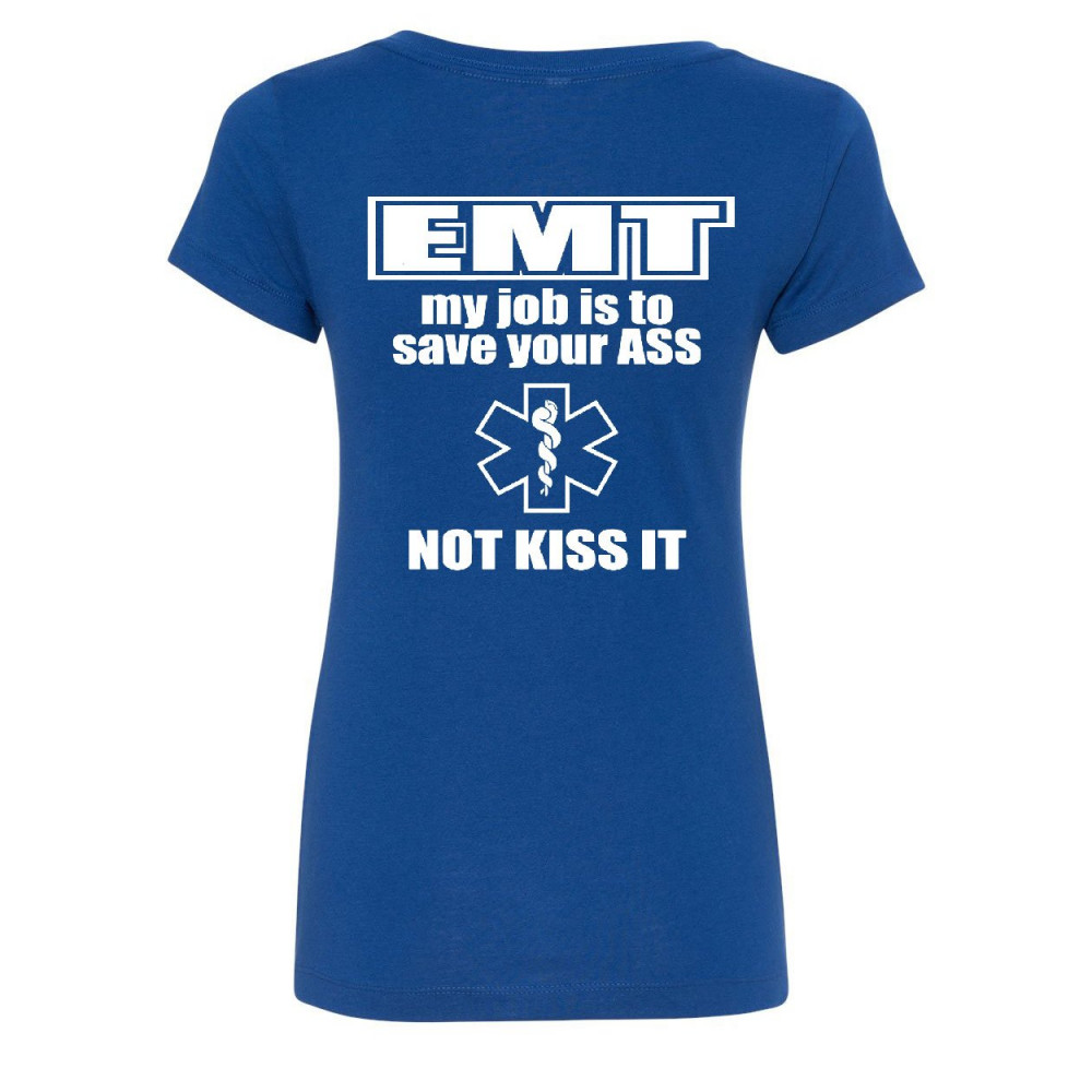 EMT MY JOB IS TO SAVE YOUR ASS v-neck t-shirt funny medic royal blue