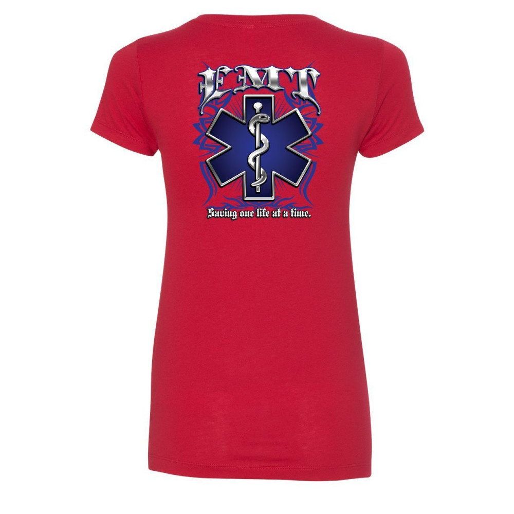 EMT SAVING ONE LIFE AT A TIME women's v-neck t-shirt paramedic first responders red